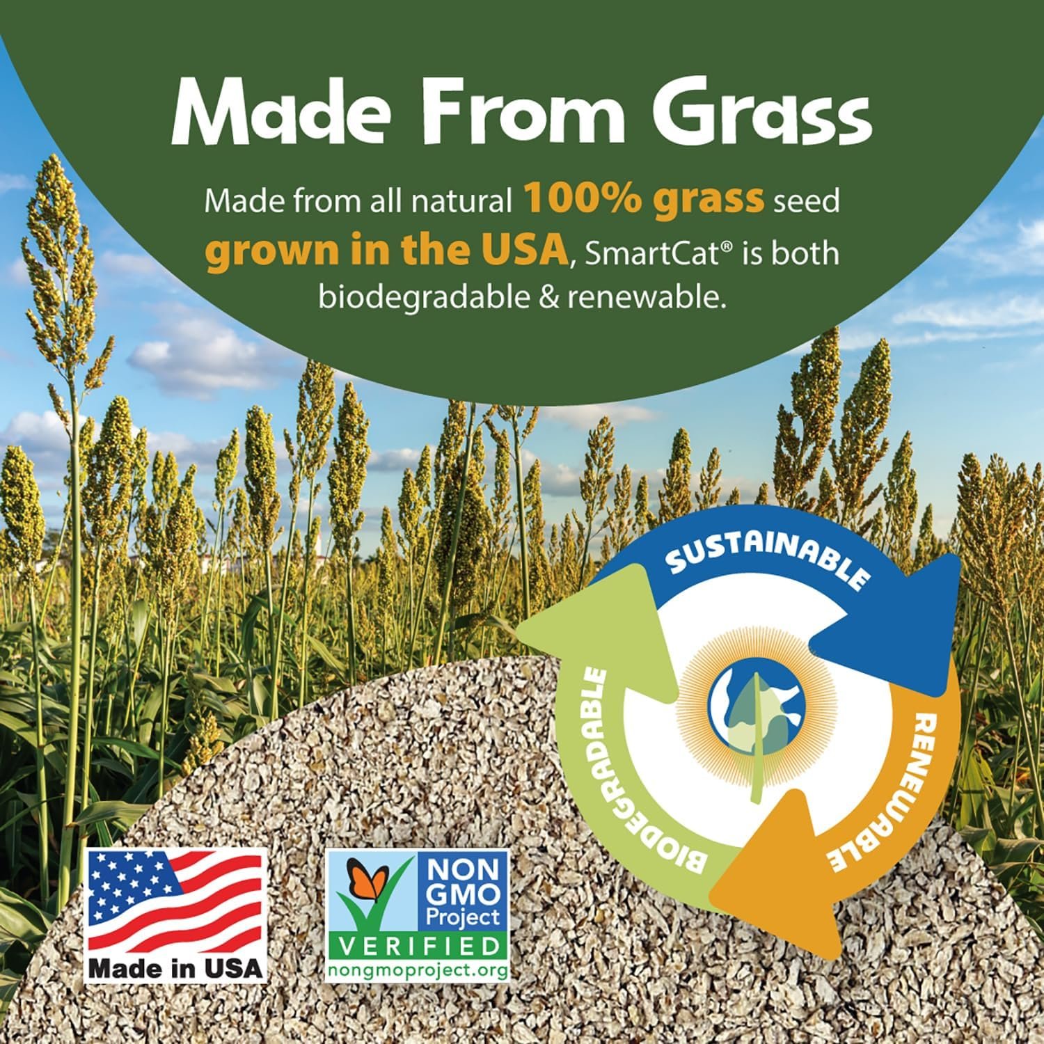 MADE FROM GRASS: Clumping at litter made from all natural 100% grass seed grown in the USA, SmartCat is both biodegradable and renewable 99% dust free cat litter.