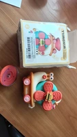 It is poorly attached to the base, the child tears it off easily, otherwise, a beautiful toy. Rolls back and forth if pushed. Disassemble