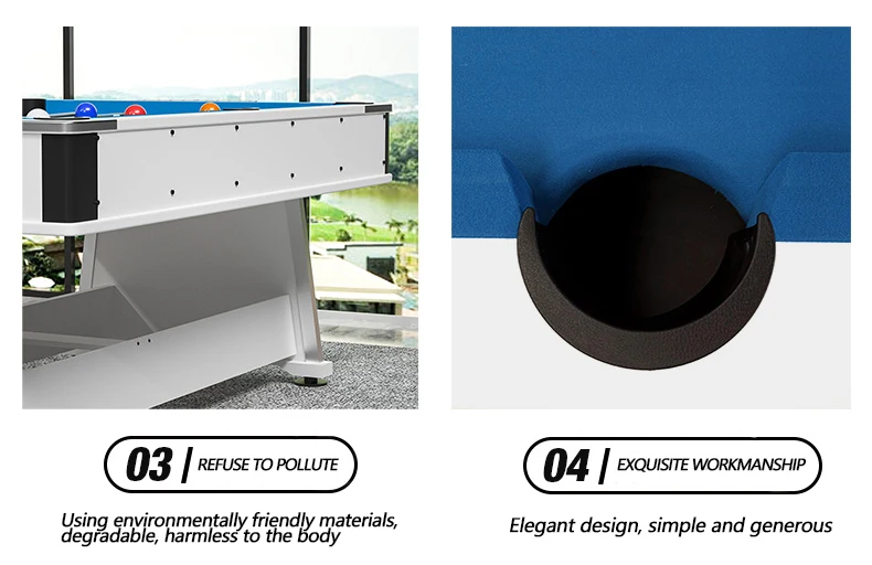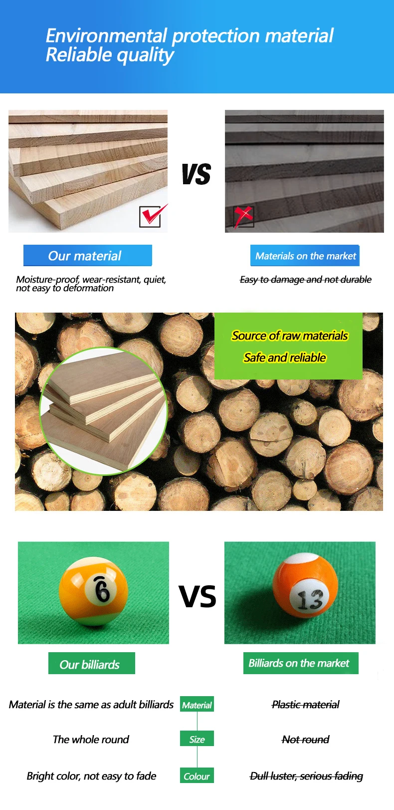 Q1: Are you a manufacturer? – – -Yes we have factory and international sales team with more than 7 years experience. Q2: What materials are you using for billiard tables? – – -Our main materials includes MDF,solid wood, famous brand slates, durable rubber cushion, high quality felt/cloth, high quality surface paint and accessories etc. Q3: What table or cloth color options do you have? – – -For table color options, we have white, black, brown, grey, raw or dard wood, mahogany, golden, silver etc (We can also customize colors if you provide color palette). For cloth color ptions, we have green, blue, camel, black, mocha, orange and redetc. Q4: Can you provide table accessories? – – -Yes we provide FREE set accessories for every table so basically you don’t need to buy accessories in your local market. Q5: How can I place an order? – – -Our simple process will be like this. Order details confirmation – Payment made – Factory manufacuturing – Delivery – Customer collects cargos. Q6: How long will it take to make a new table? How long will it take by delivery? – – -It depends on complexity of the table. Normally it takes 7/12 days to make a new table. We always try our best to complete earlier without delay. With regards to delivery, it depends on which country are you from? Sales person will answer the delivery lead time. Q7: How can I install pool table? is it easy? – – -It’s actually easy to install pool table. We will provide pool table instructions as reference. But we always suggest client to hire a technician to install to avoid mistakes and save time. Q8: What are the payment method that you can accept? – – -We prefer to accept T/T Wire, Western Union, Moneygram or Alibaba payment etc.