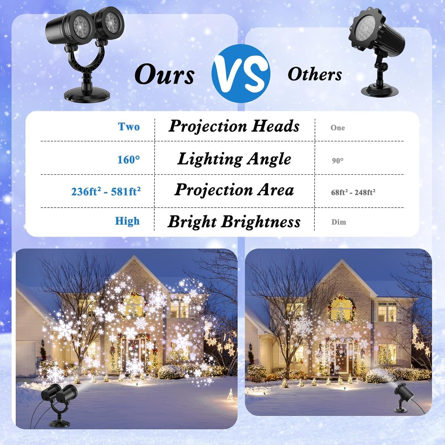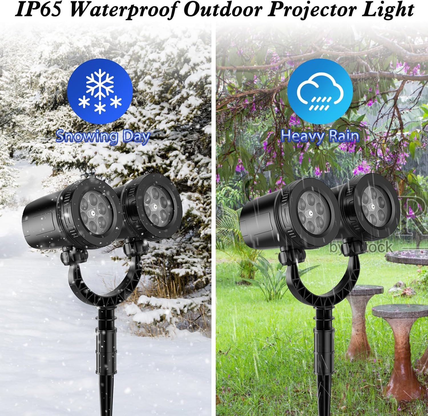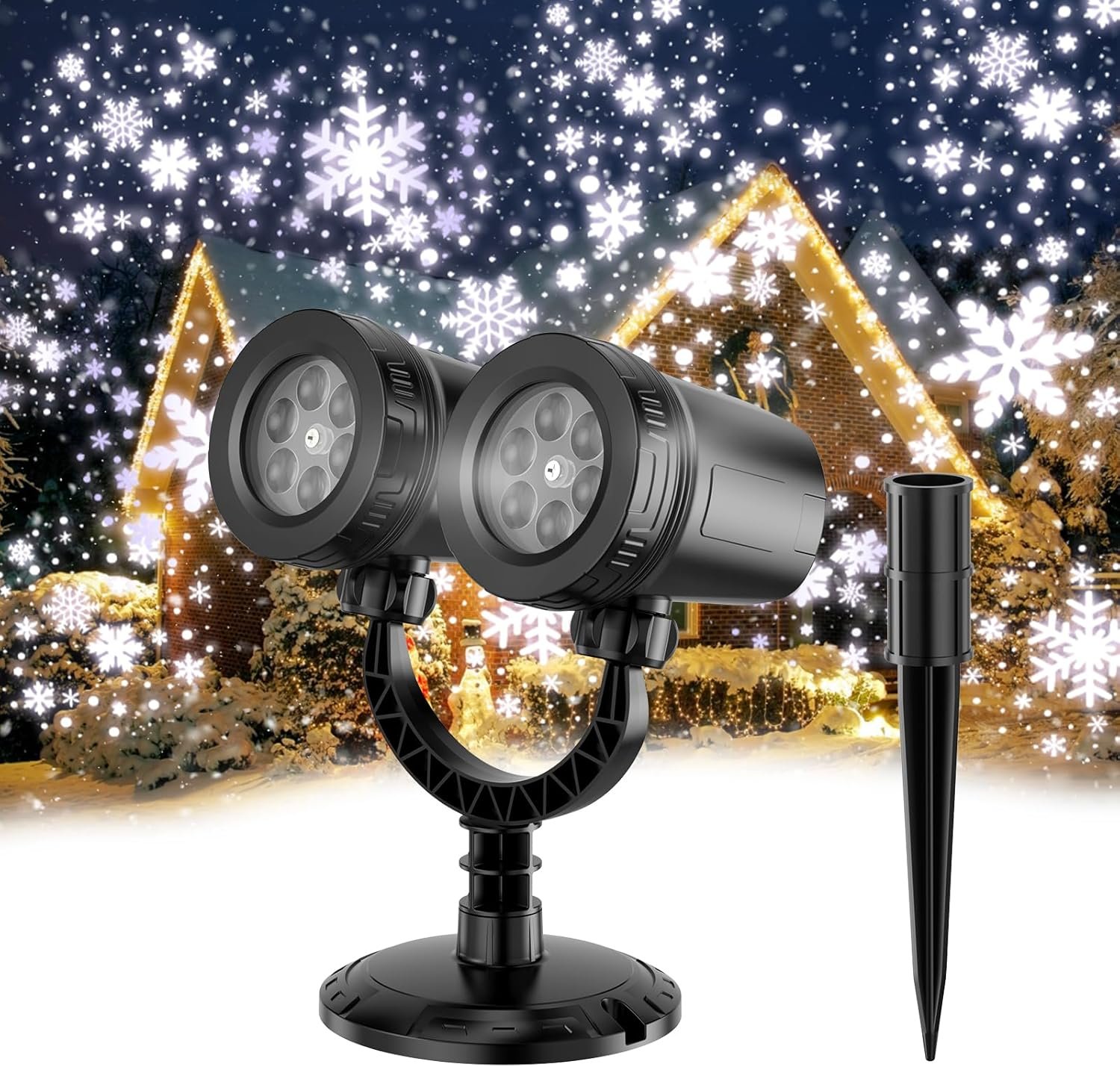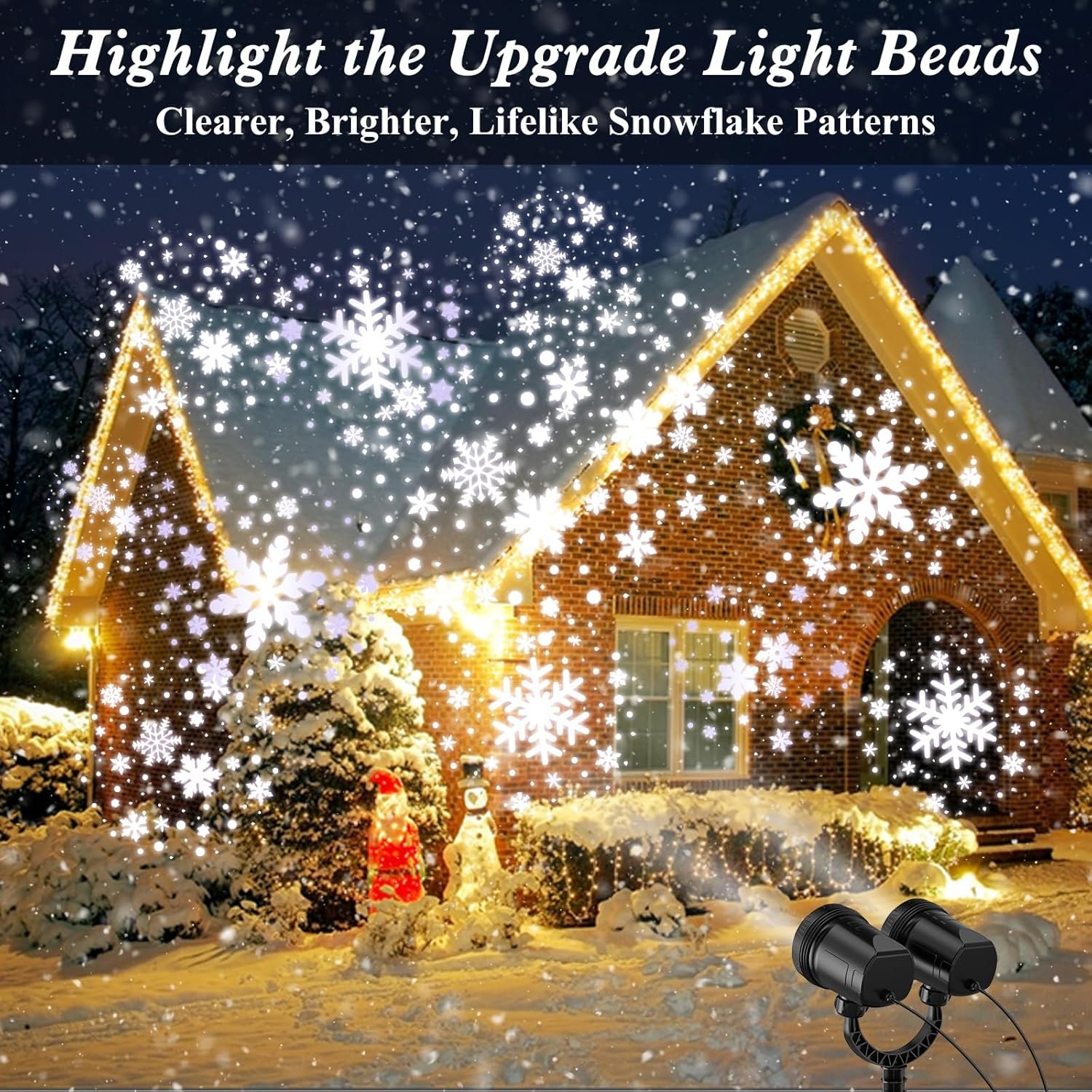 Snowflake Christmas Projector Light Outdoor – 2024 Upgraded Double Head Projection Design, IP65 Waterproof LED Christmas Light Projector for Xmas Holiday Party Patio Garden Yard Decoration