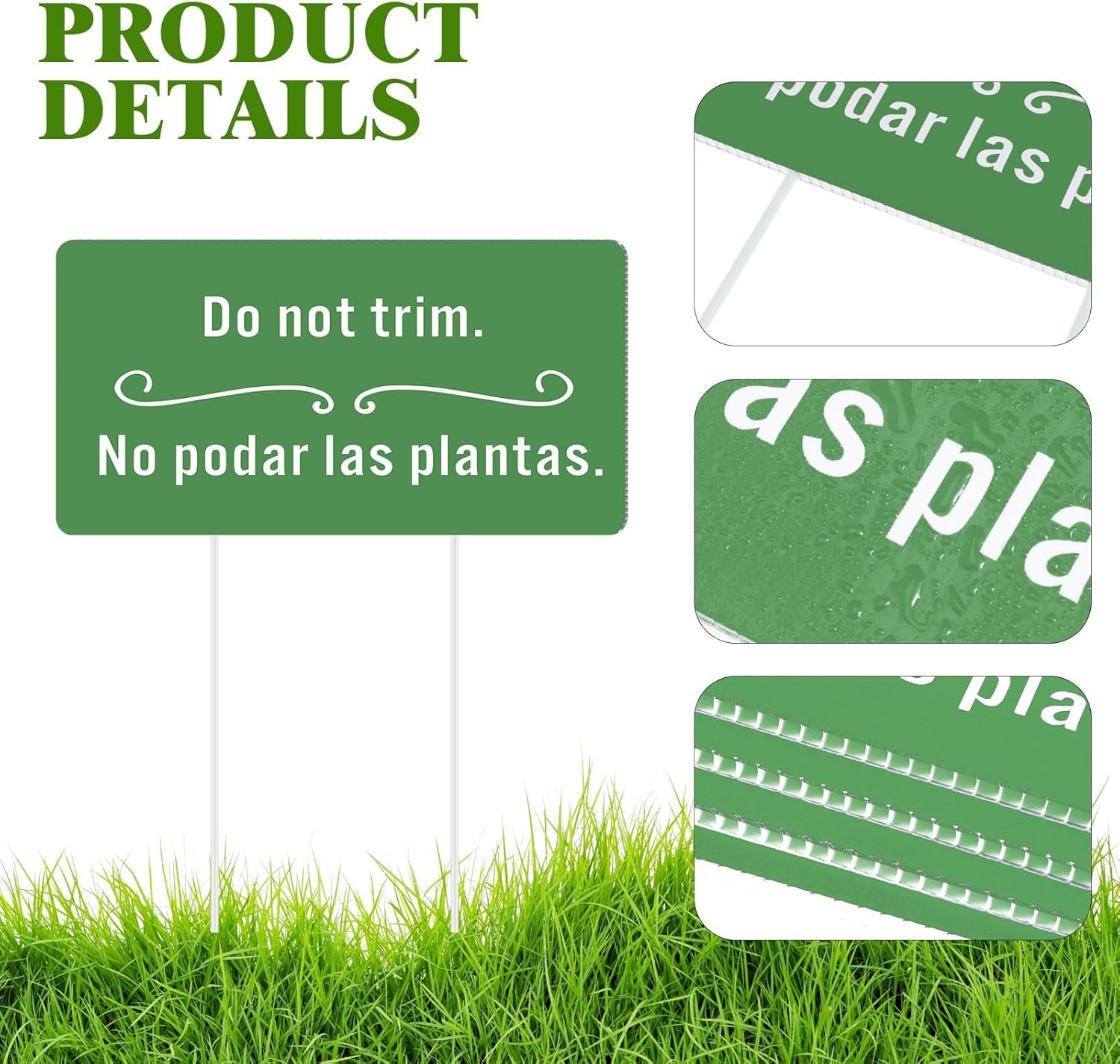 Soaoo 4 Pcs Corrugated Plastic Do Not Trim Yard Signs with Stakes 6.2 x 3.3 Inch 9.2 x 4.9 Inch Plant Signs Bilingual Garden Markers for Outdoor Lawn(Green)