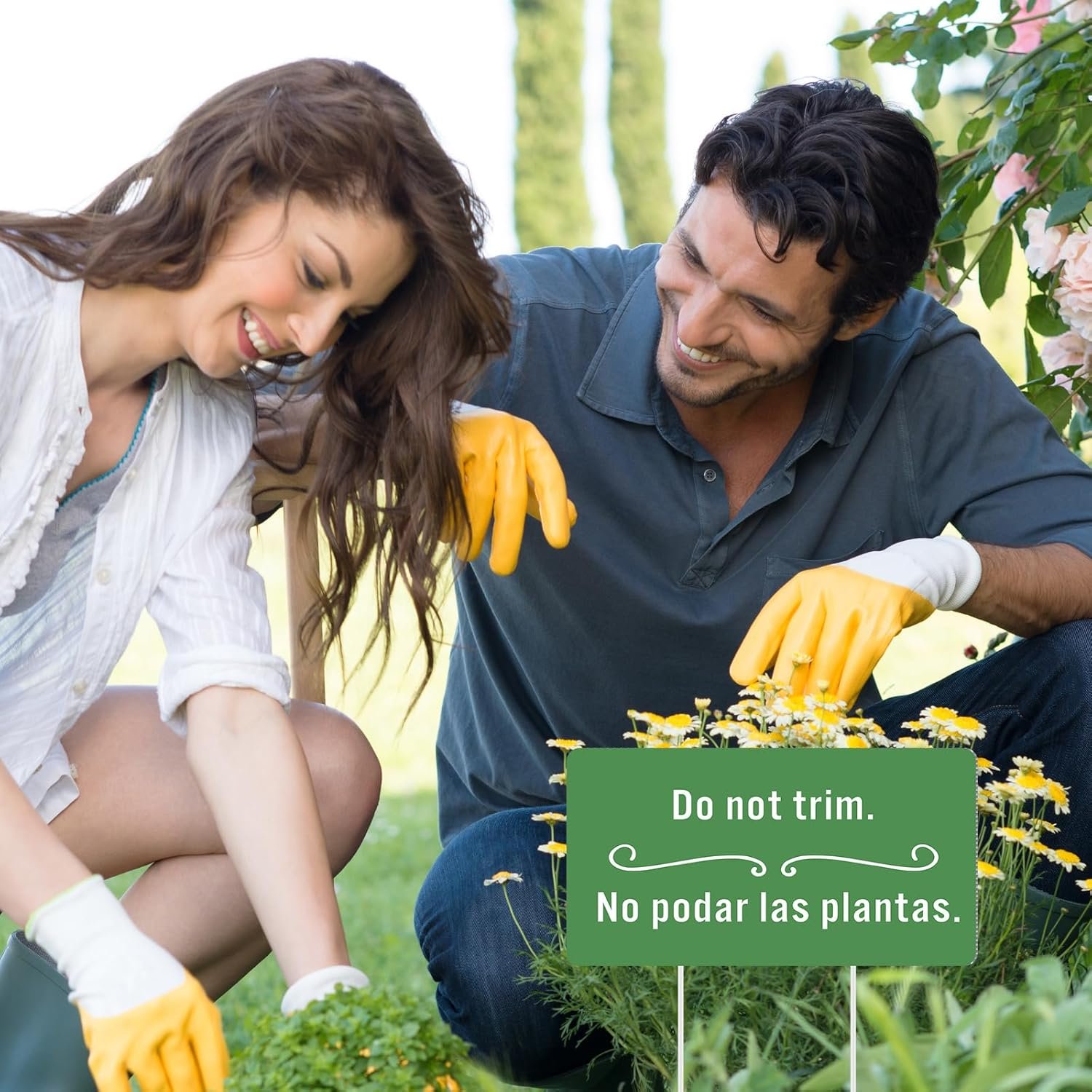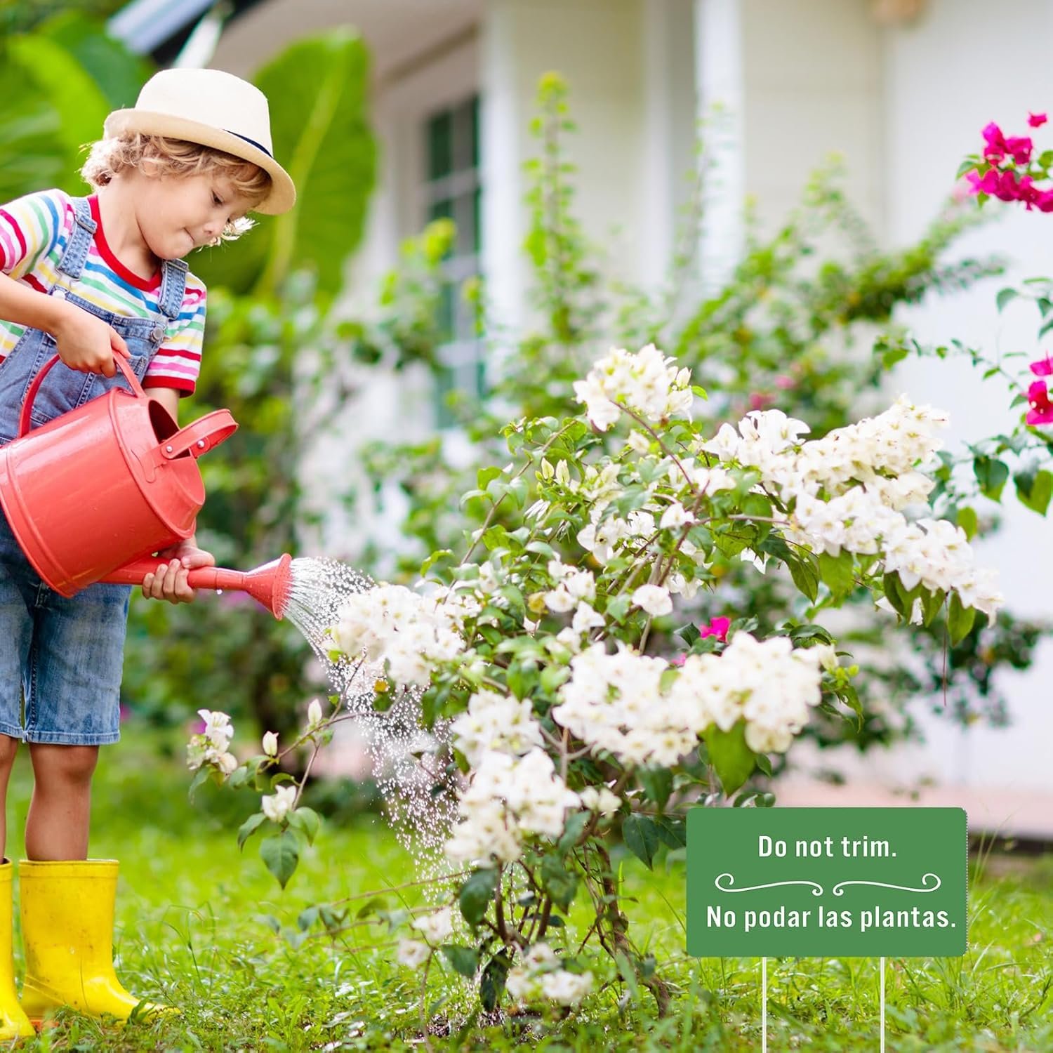 Bilingual and Easy Installation Features: this bilingual signs includes the words in English and Spanish; In addition, the sign’s easy to install feature gives the gardening enthusiast an easy time during installation; No tools required, just plug the stakes into the corrugated plastic signs and they are ready to use
