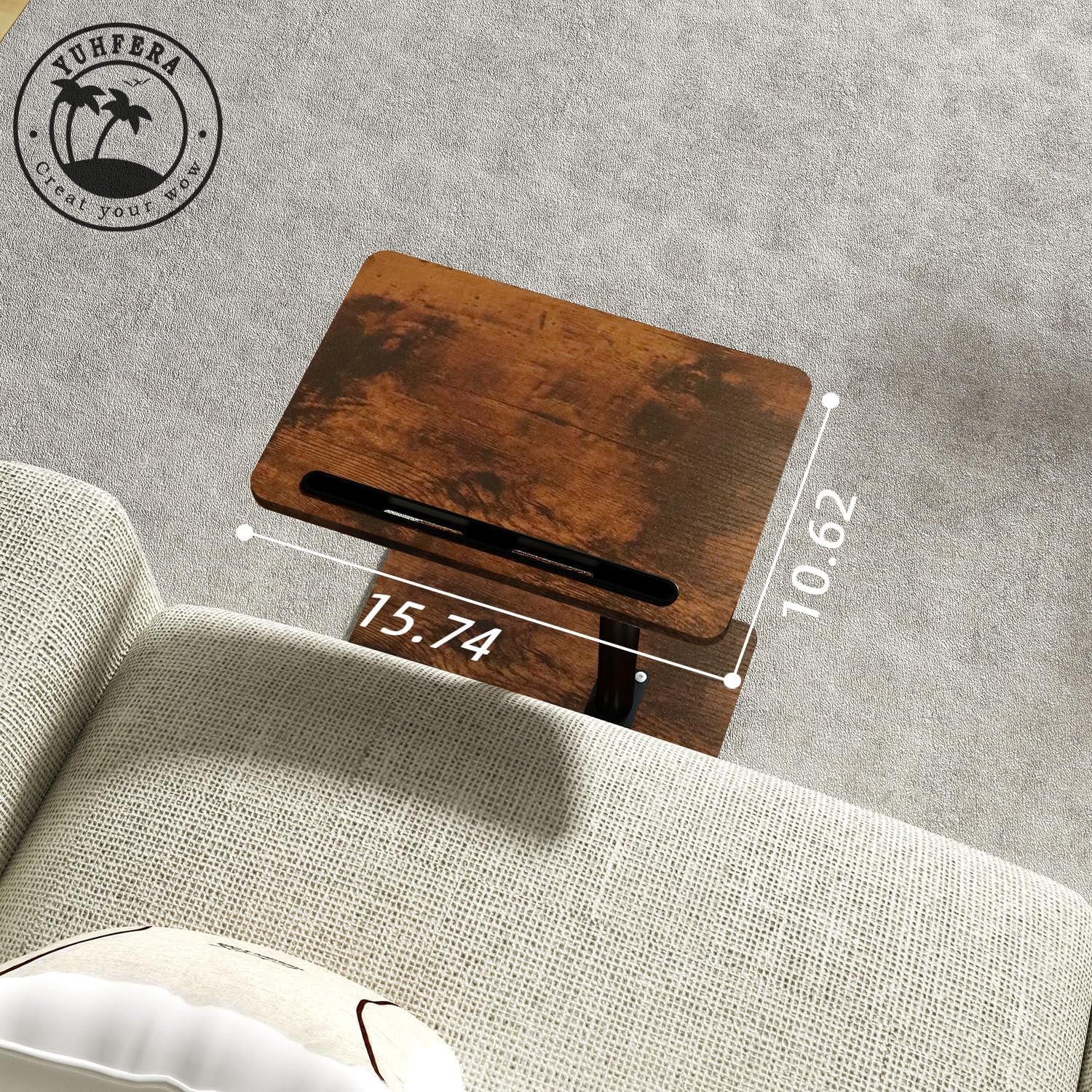 Sofa Armrest Tray Table for Couch – 360° Swivel Height Adjustable End for Small Spaces, Snack Side Table for Bed or Chair with Phone & Tablet Slot (Rustic,Standard)
