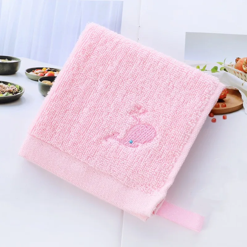 Soft Children Towel Washcloth Baby Bathing Feeding Cartoon Embroidery Cotton Towel for Newborn Handkerchief Shower Cloth 25x25cm