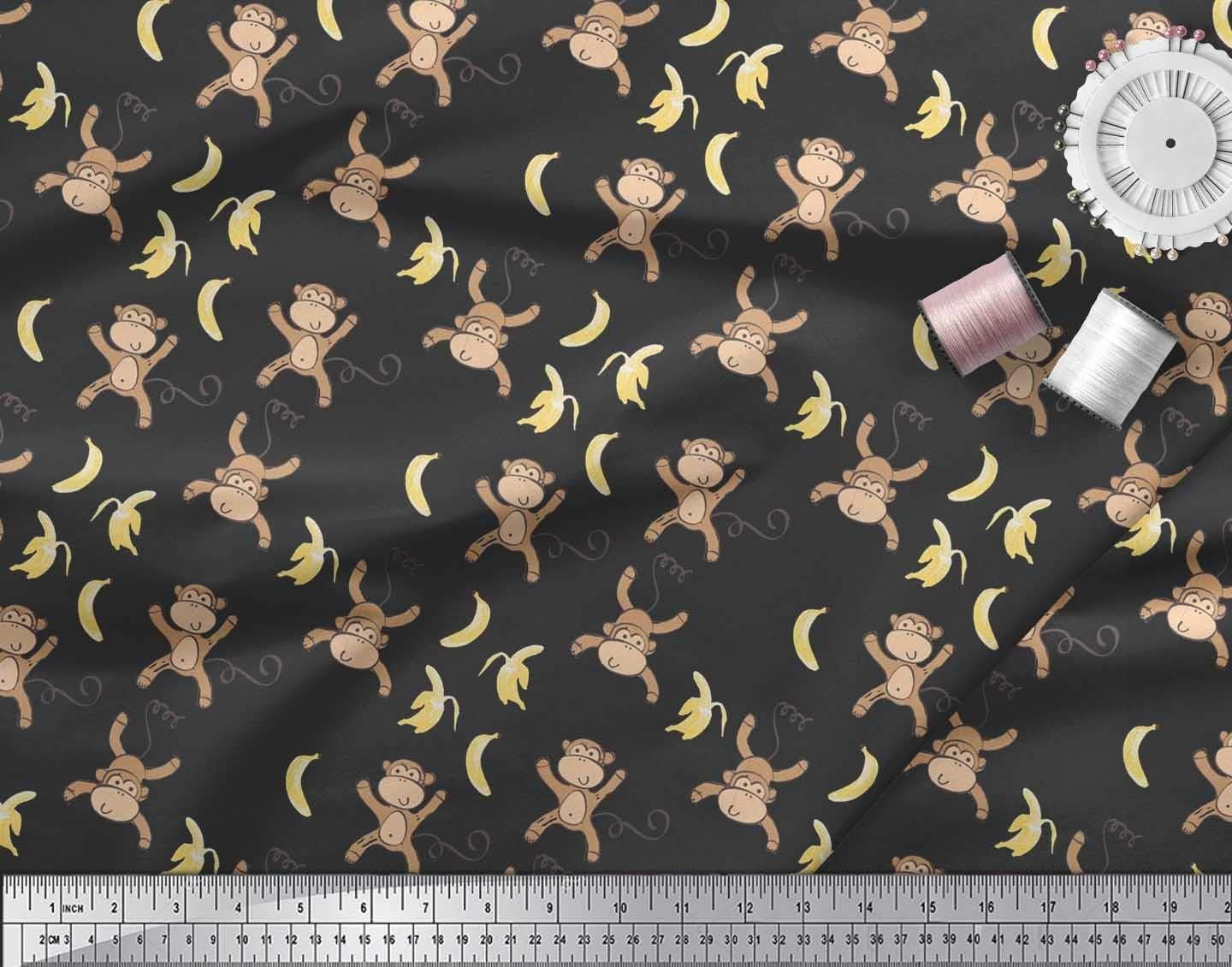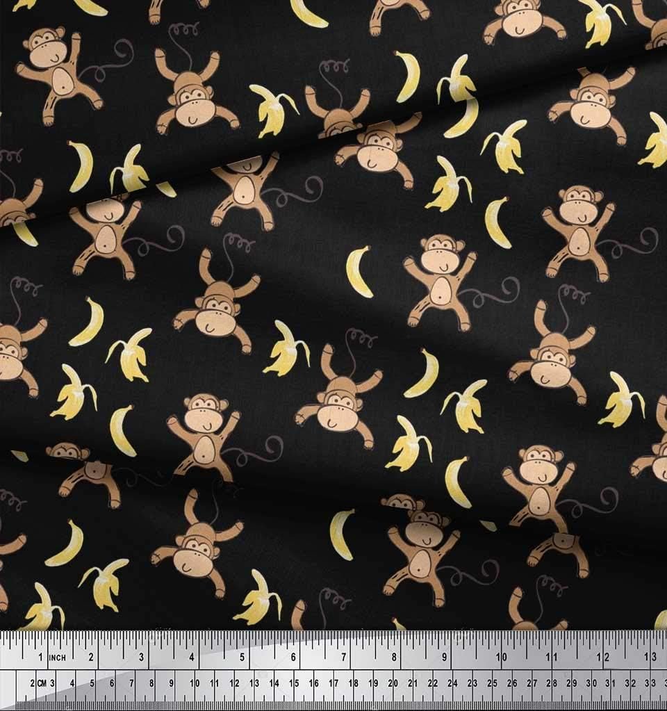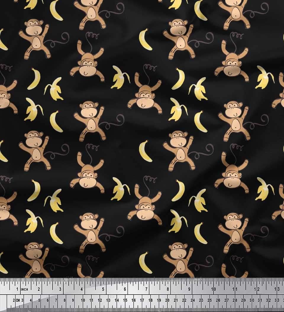Soimoi Cotton Cambric Black Fabric – by The Yard – 42 Inch Wide – Banana & Monkey Cartoon Kids Textile – Playful and Tropical Monkey Patterns for Stylish Kids’ Fashion Printed Fabric
