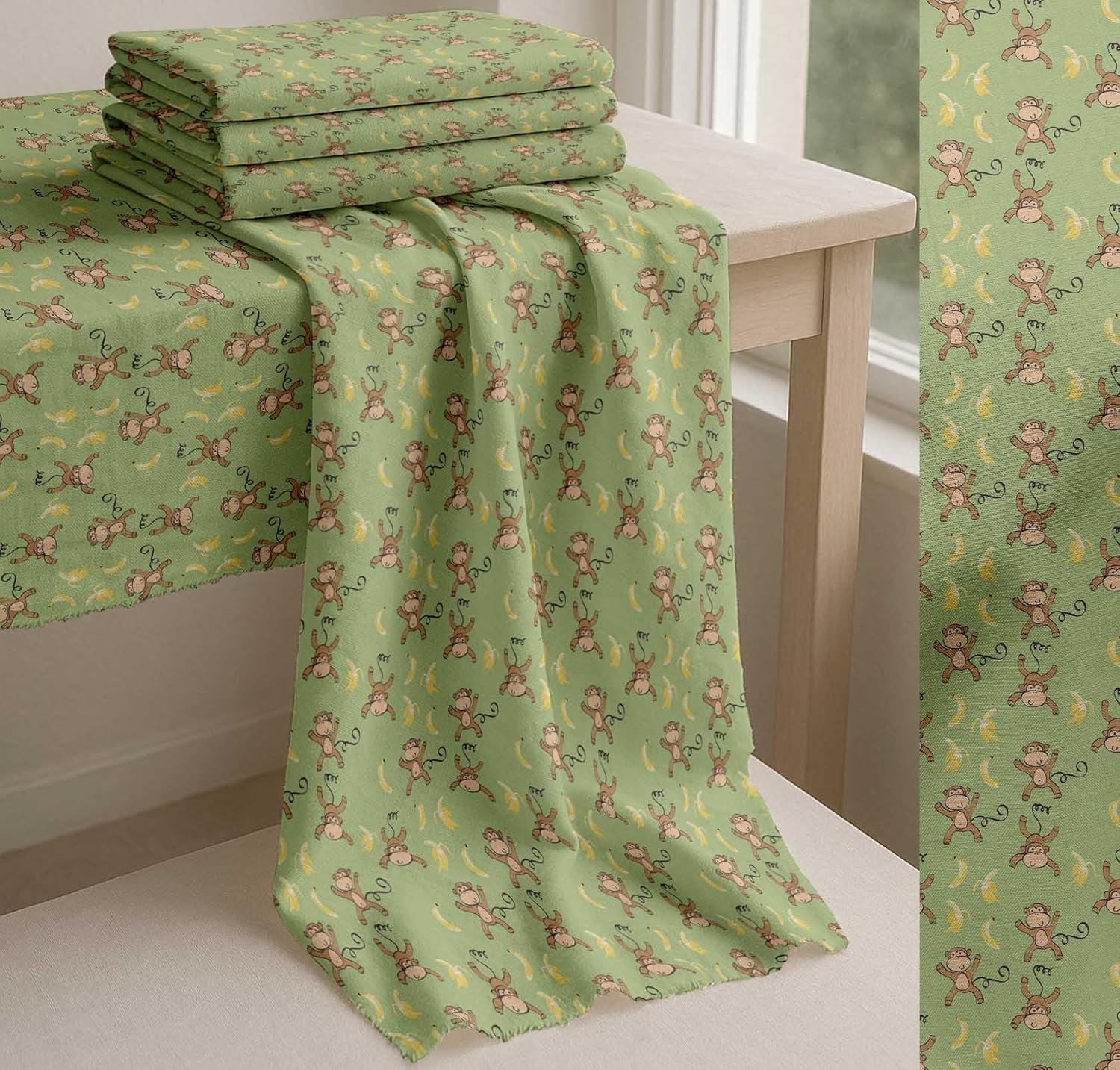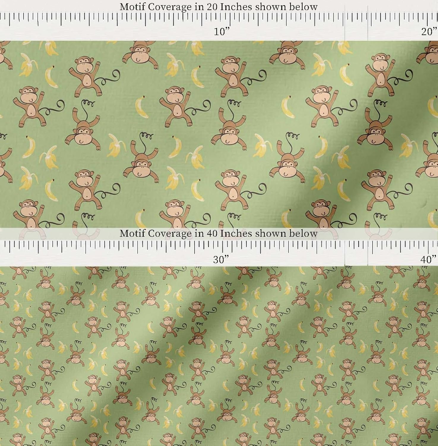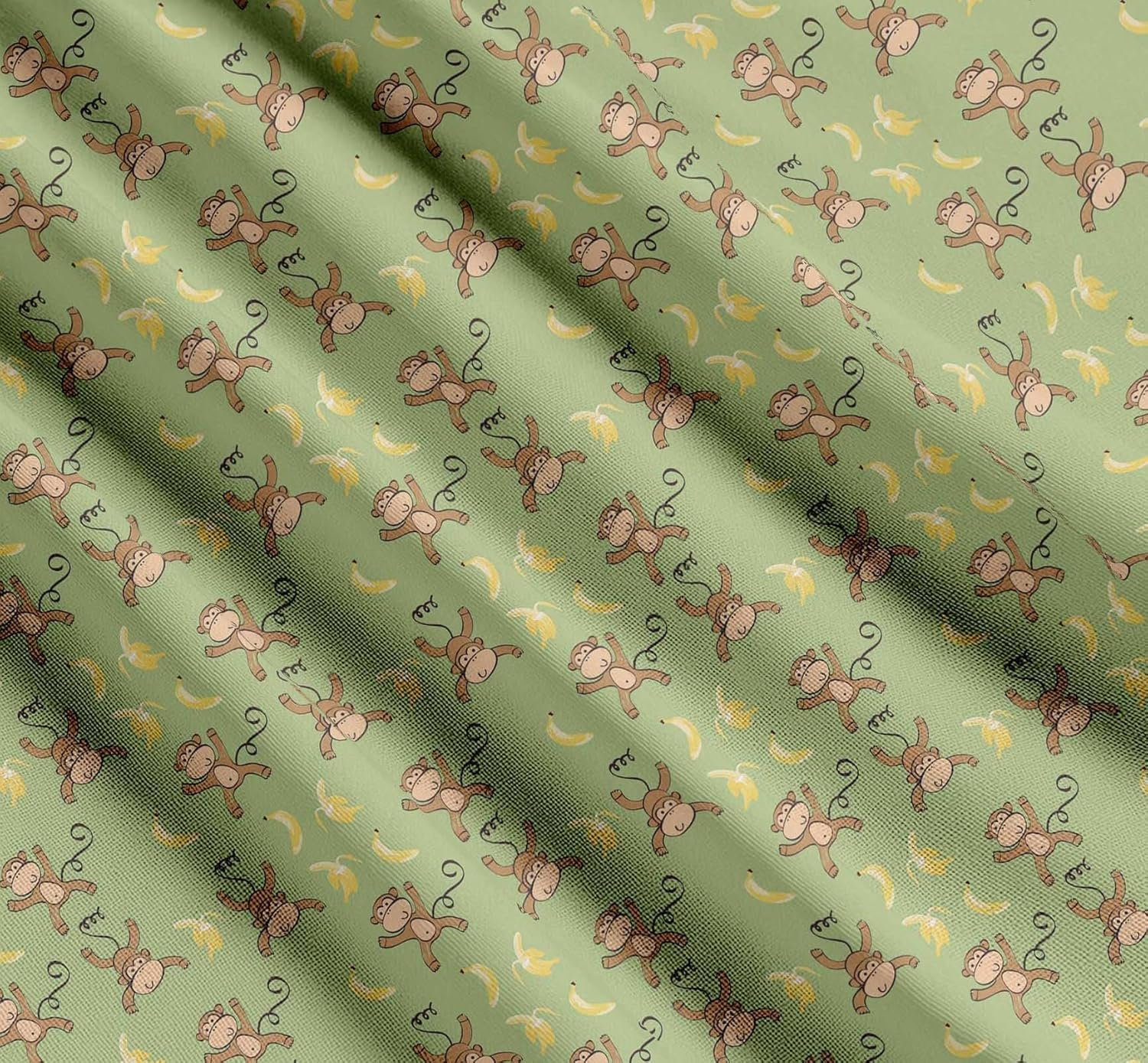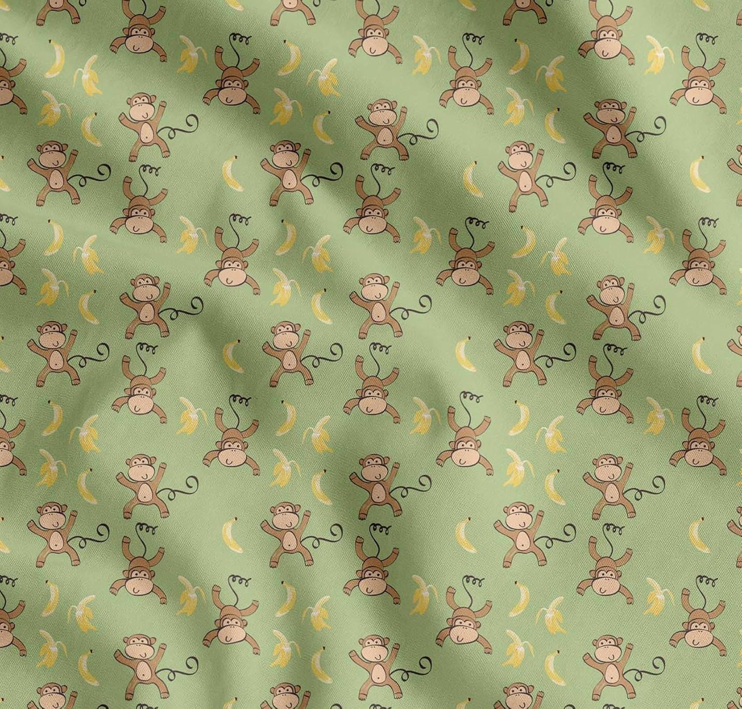 Soimoi Cotton Cambric Green Fabric – by The Yard – 42 Inch Wide – Banana & Monkey Cartoon Kids Textile – Playful and Tropical Monkey Patterns for Stylish Kids’ Fashion Printed Fabric