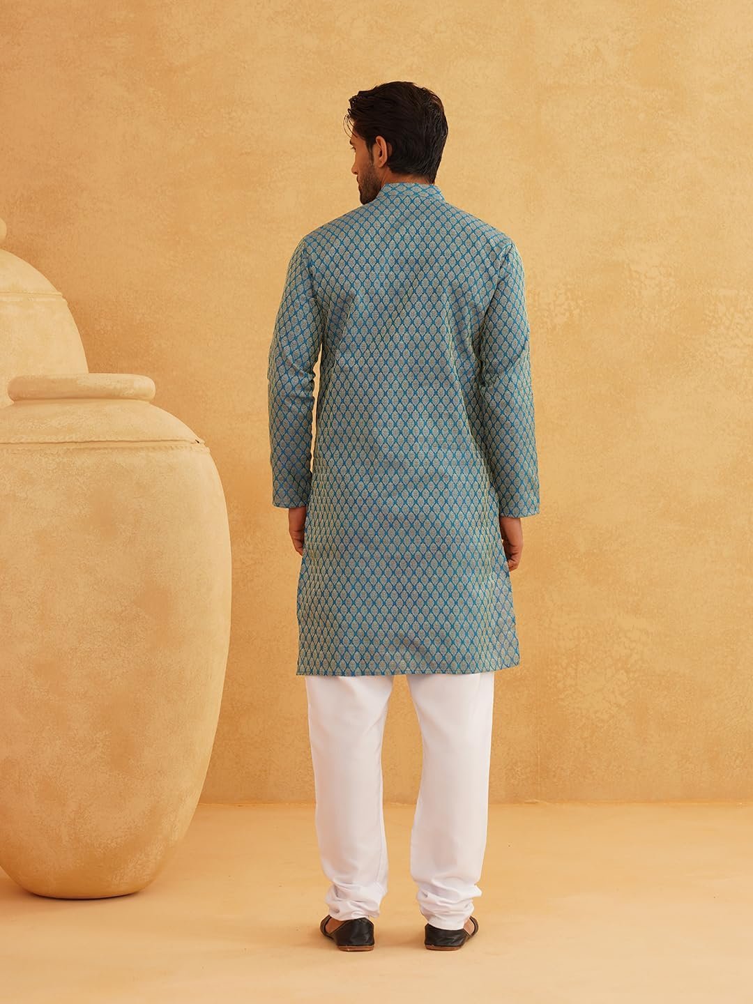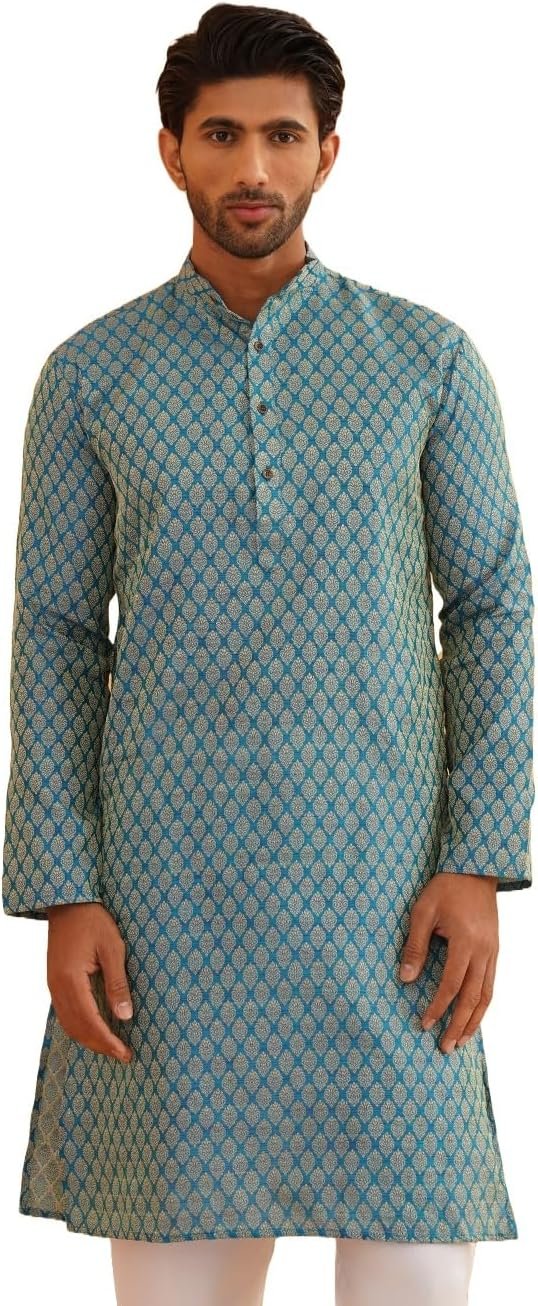 Sojanya (Since 1958 Men’S Cotton Linen Blue Foil Printed Only Long Kurta