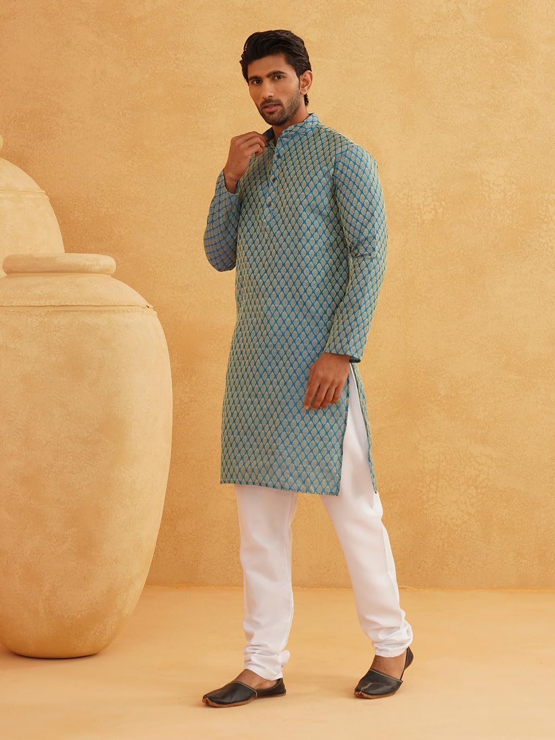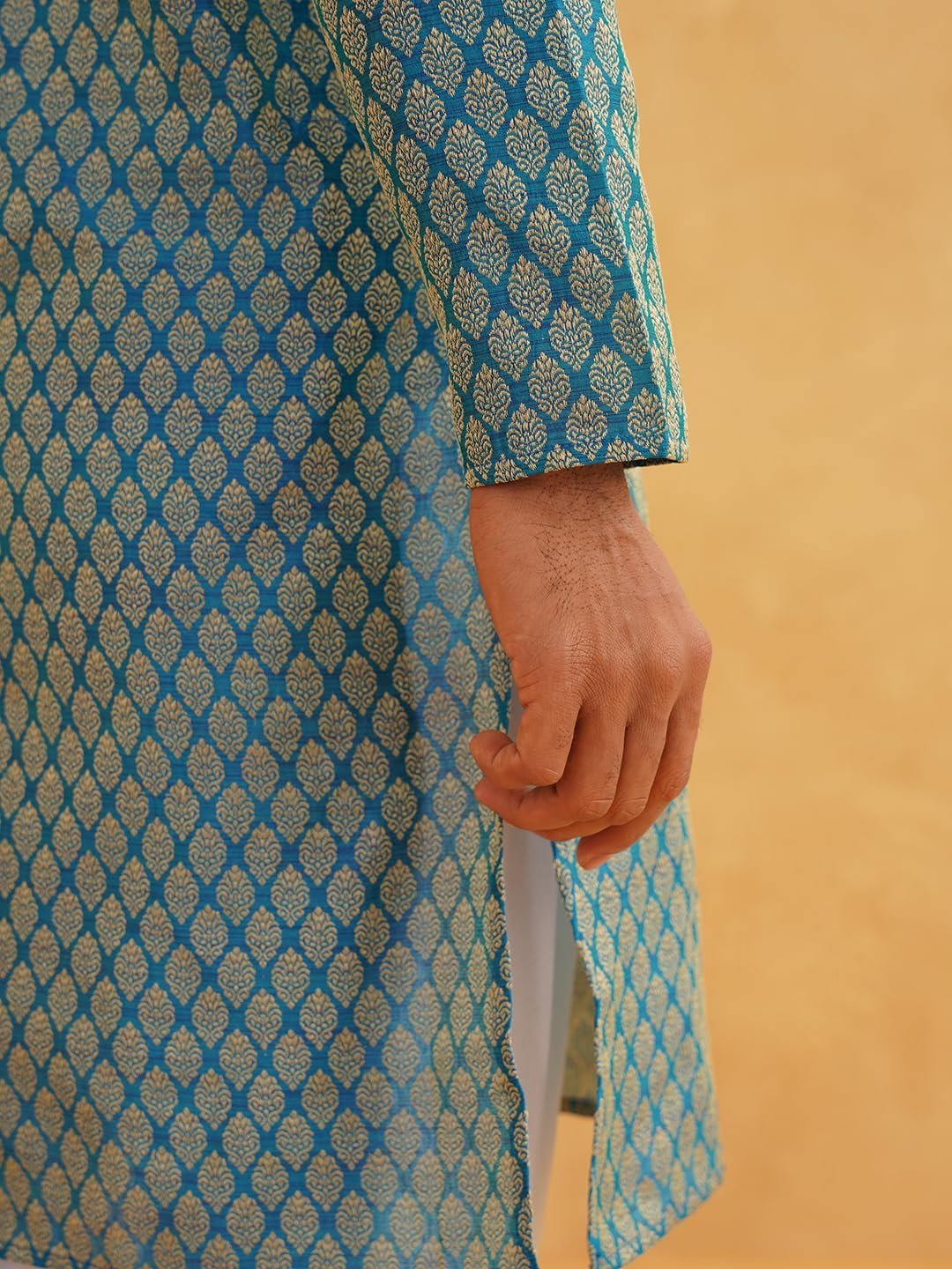 SOJANYA as a brand brings you quality and affordability. In market since 1958, we take pride in our commitment to maintain quality standards in each piece manufactured by us. Rock the fashion world as you adorn this Blue kurta with foil print from the house of SOJANYA. Made from 80% Cotton 20% Linen, it would lend you a glamorous look that is just perfect for any party. Dress to kill as you adorn this Blue color kurta with foil print on the next gala.