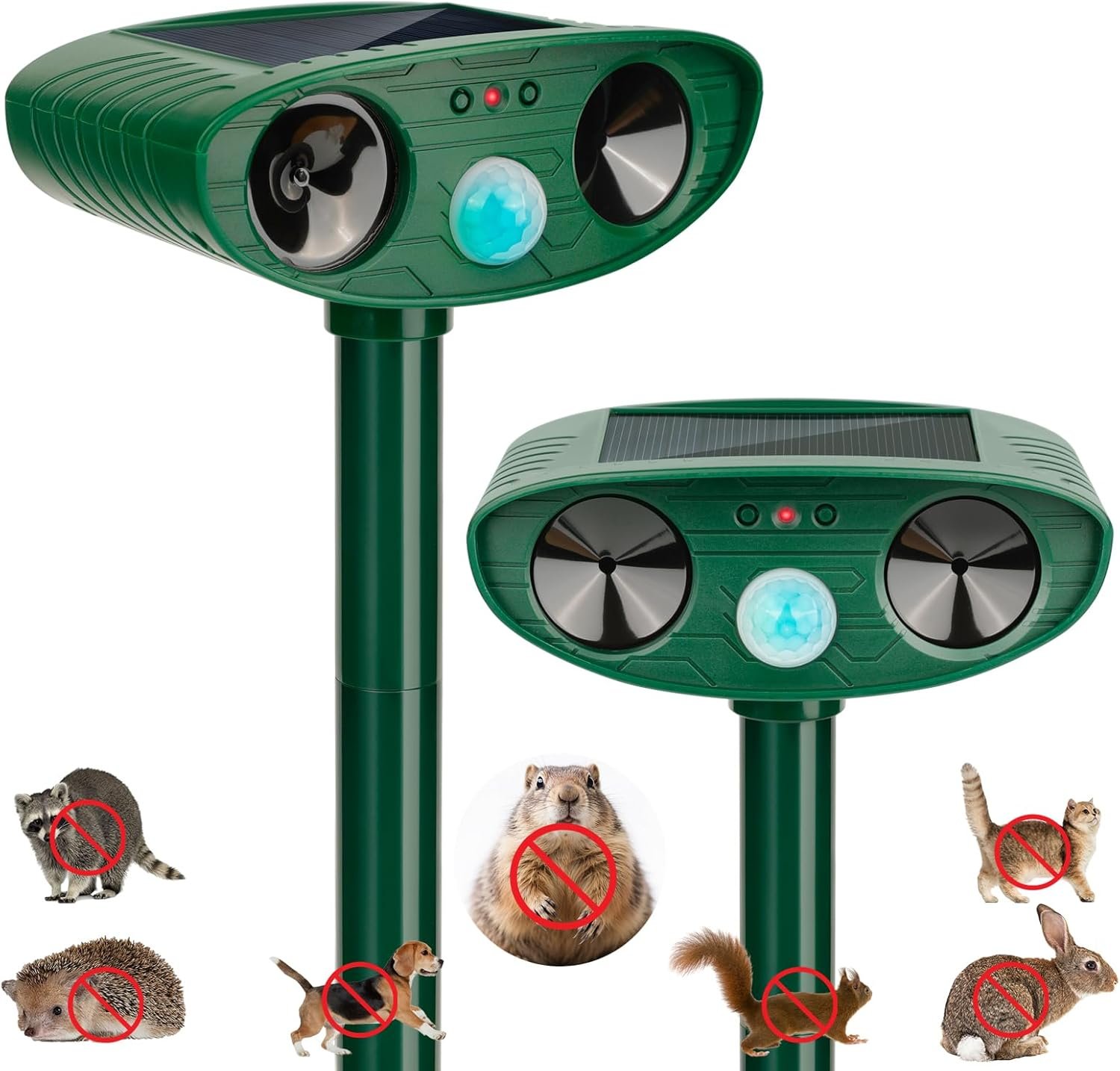 Solar Animal Repellent Ultrasonic, 2 Pack Cat Repellent Outdoor Deer Repellent Devices with Motion Sensor Animal Repeller to Repel Cat Deer Squirrel Rabbit Dog Skunk for Yard Lawn Garden