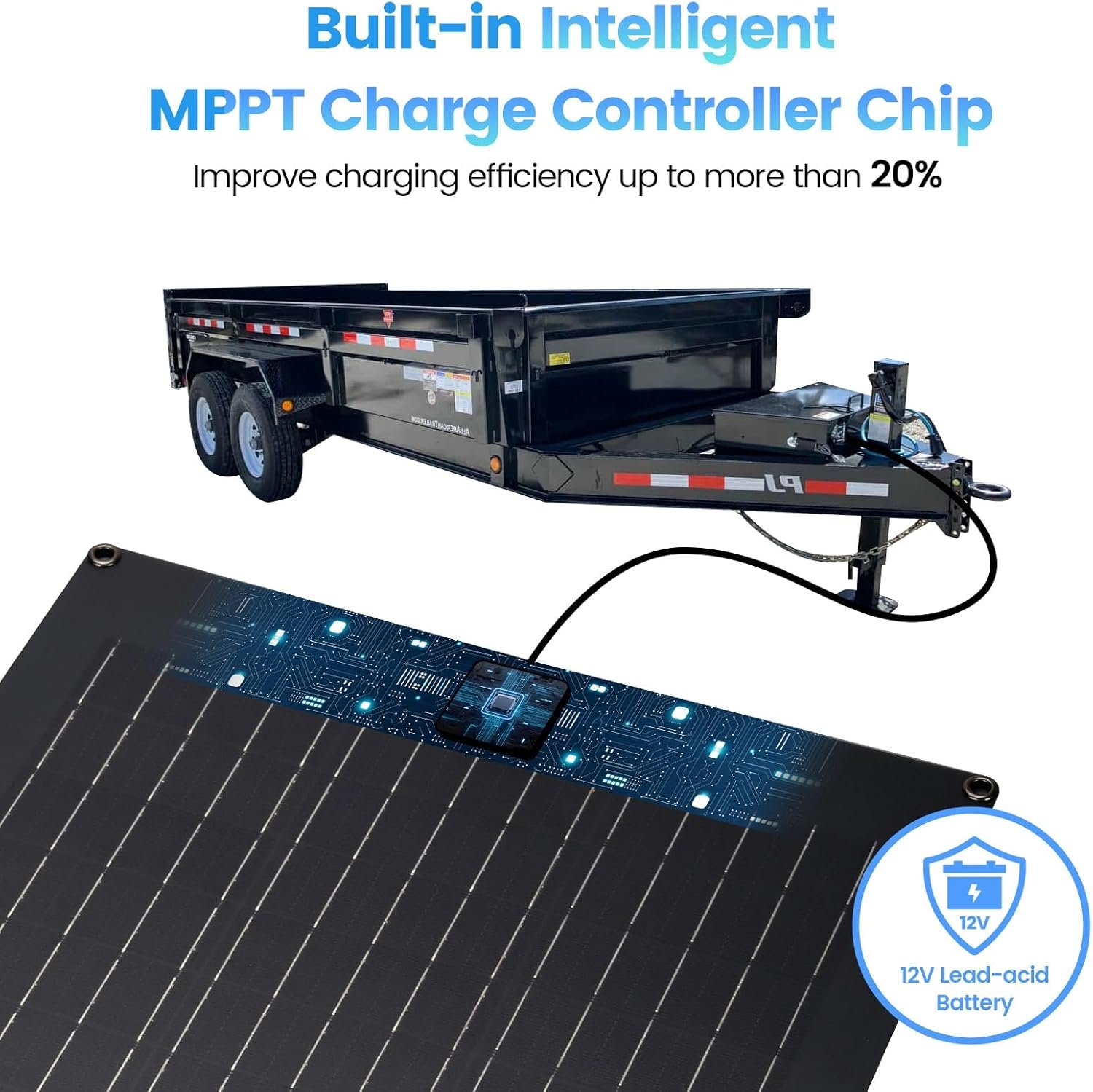MPPT CHARGED CONTROLLER: The Zuomeng solar panels for trailers uses MPPT intelligent charging technology to improve charging efficiency up to more than 20%, ensuring efficient charging and maintenance of your battery, is your ideal choice