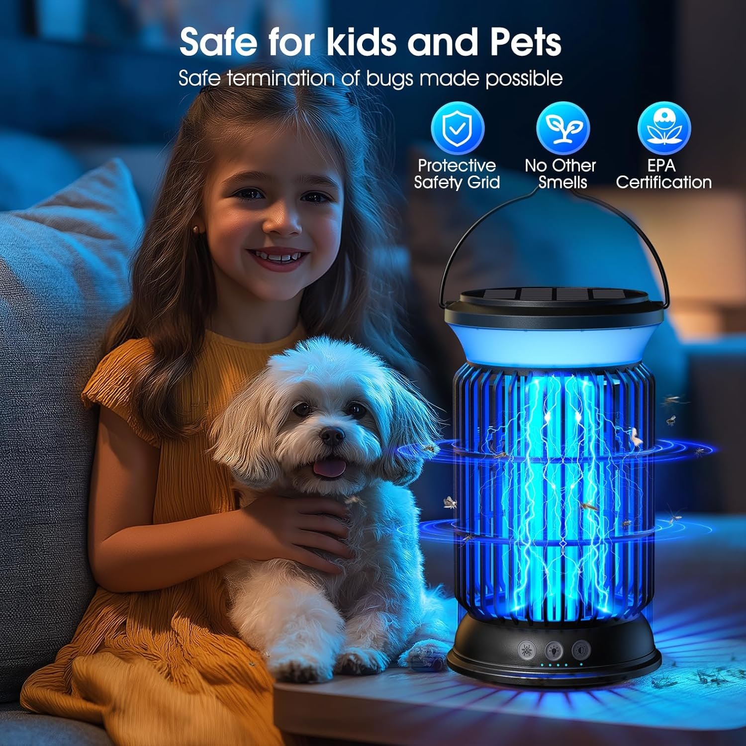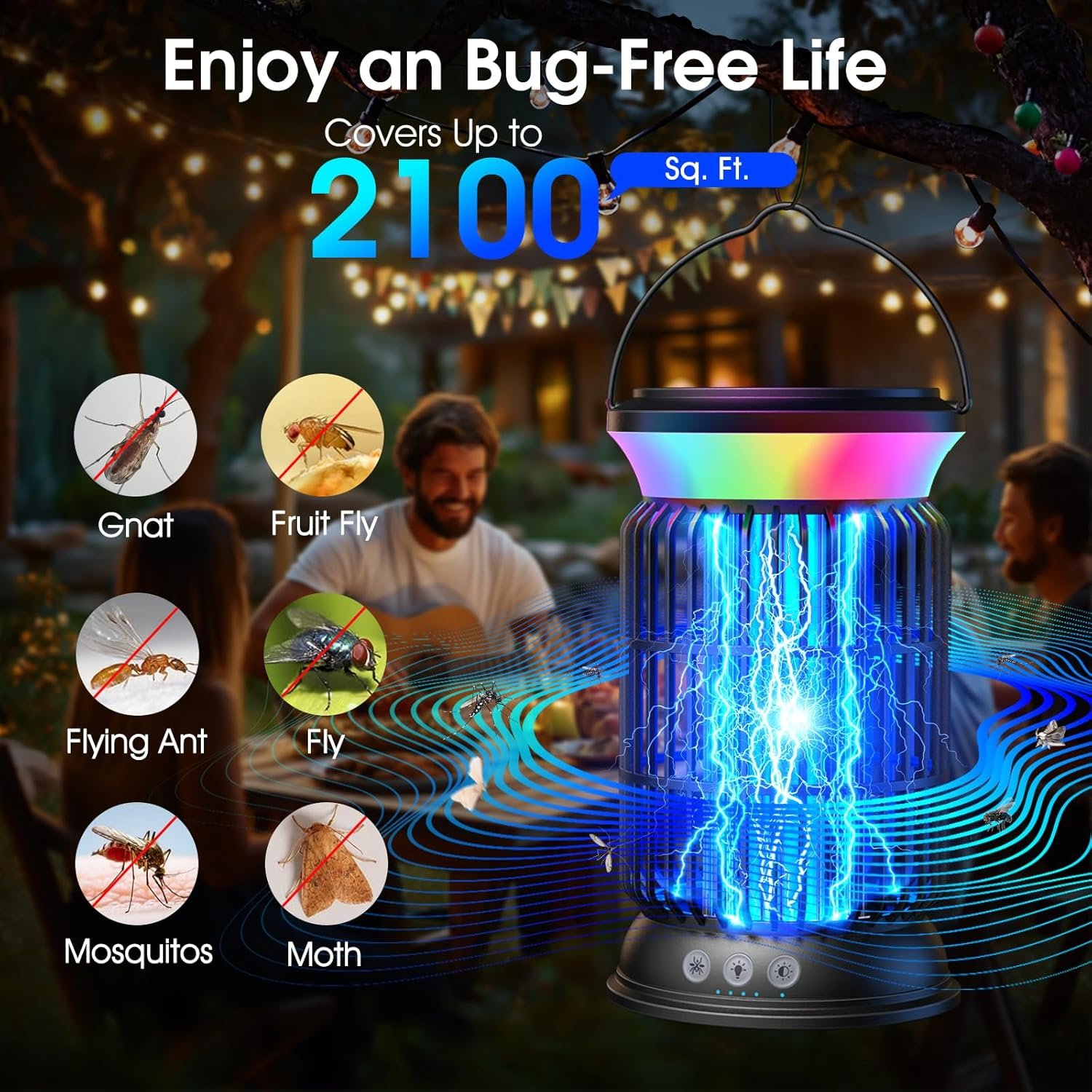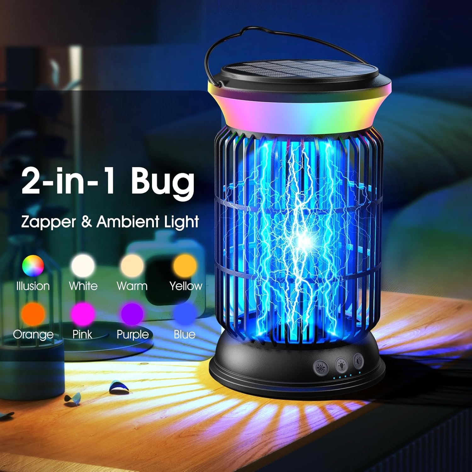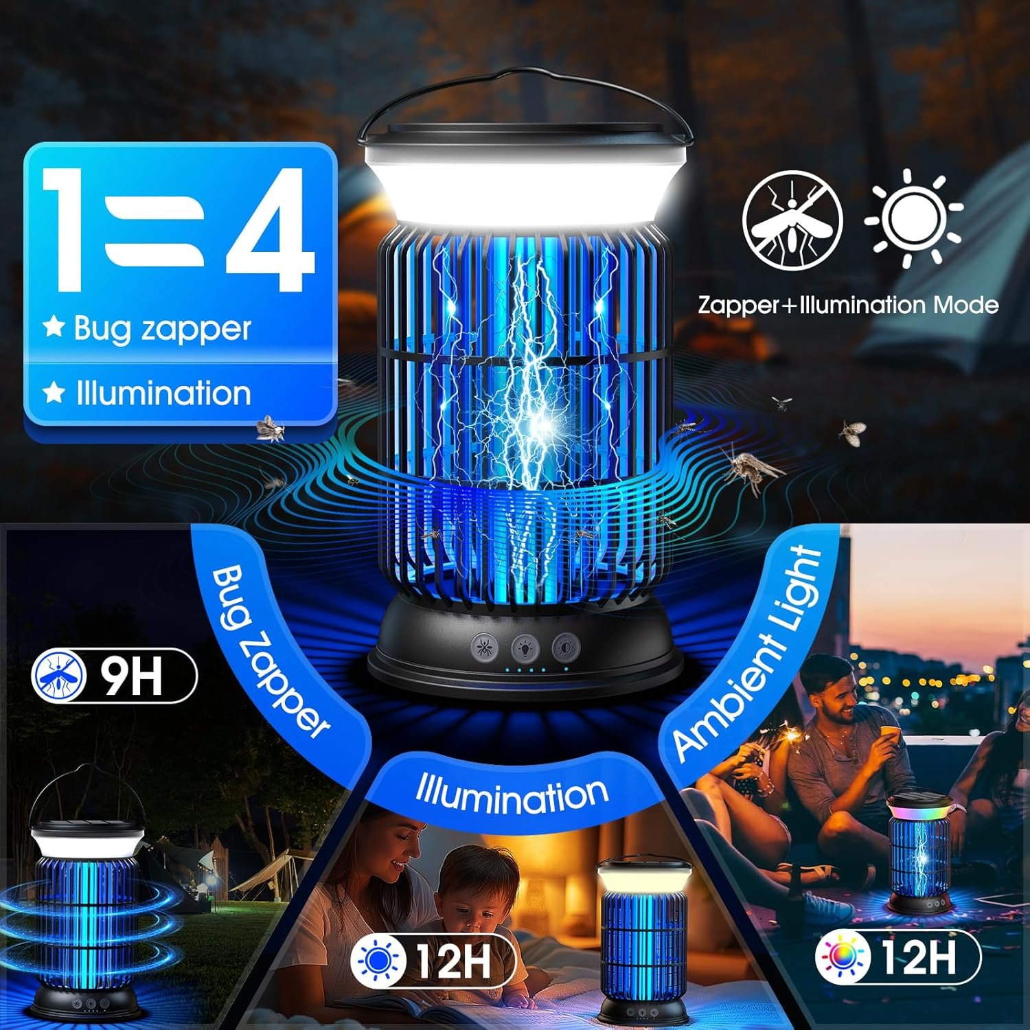 【4-in-1 Multi-Mode Lighting – Bug Control & Ambience in One】More than just a insect zapper, this versatile electronic bug zapper includes 4 modes: bright light for visibility, single-color mode for ambient lighting, dynamic color-changing mode for atmosphere, and bug-zapping mode to eliminate insects. Whether you need a camping lantern, patio mood light, or an efficient fly zapper outdoor, this portable bug zapper adapts to your needs, making it the perfect outdoor and indoor companion
