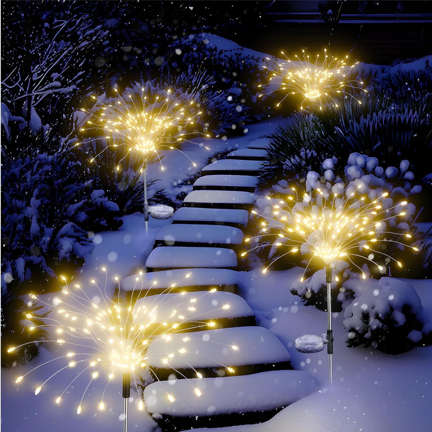 Solar Lights Outdoor Decorative: Flexible copper wires allow endless DIY possibilities—craft unique shapes like flowers, spirals, or hearts. Lightweight and easy to set up, these firework lights are perfect for enhancing patios, pathways, lawns, and gardens during holidays, weddings, Christmas, party or everyday use.