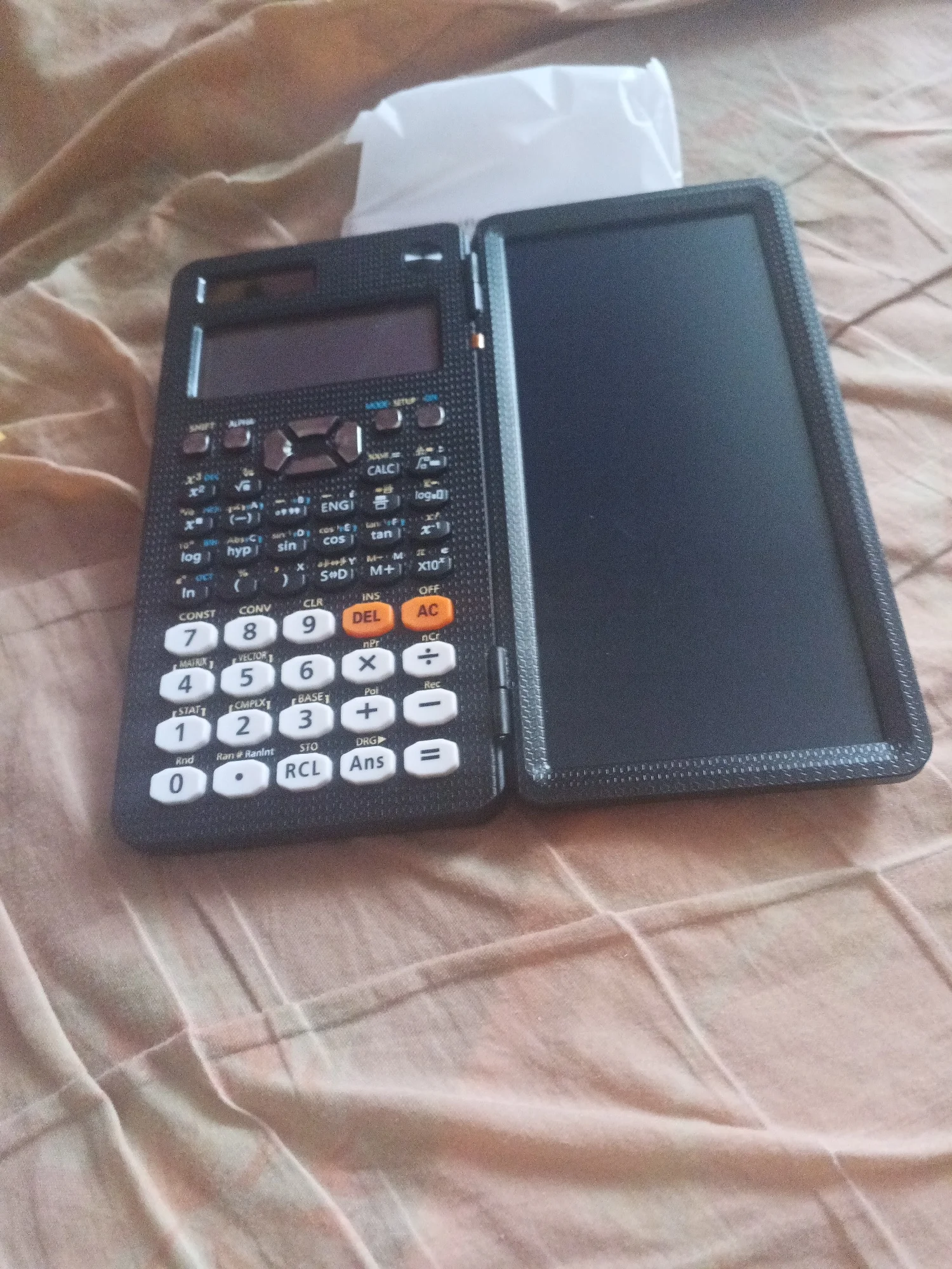 This science calculator is perfectly integrated with an additional lcd writing tablet, allowing students to write while calculating. The button of this calculator are made of plastic, which is more comfortable and more sensitive. The calculator base plate uses ultrasonic fusion technology, and the fit is super good. At the same time,solar calculator has dual-battery (solar and cell) , solar powered with a battery back up.