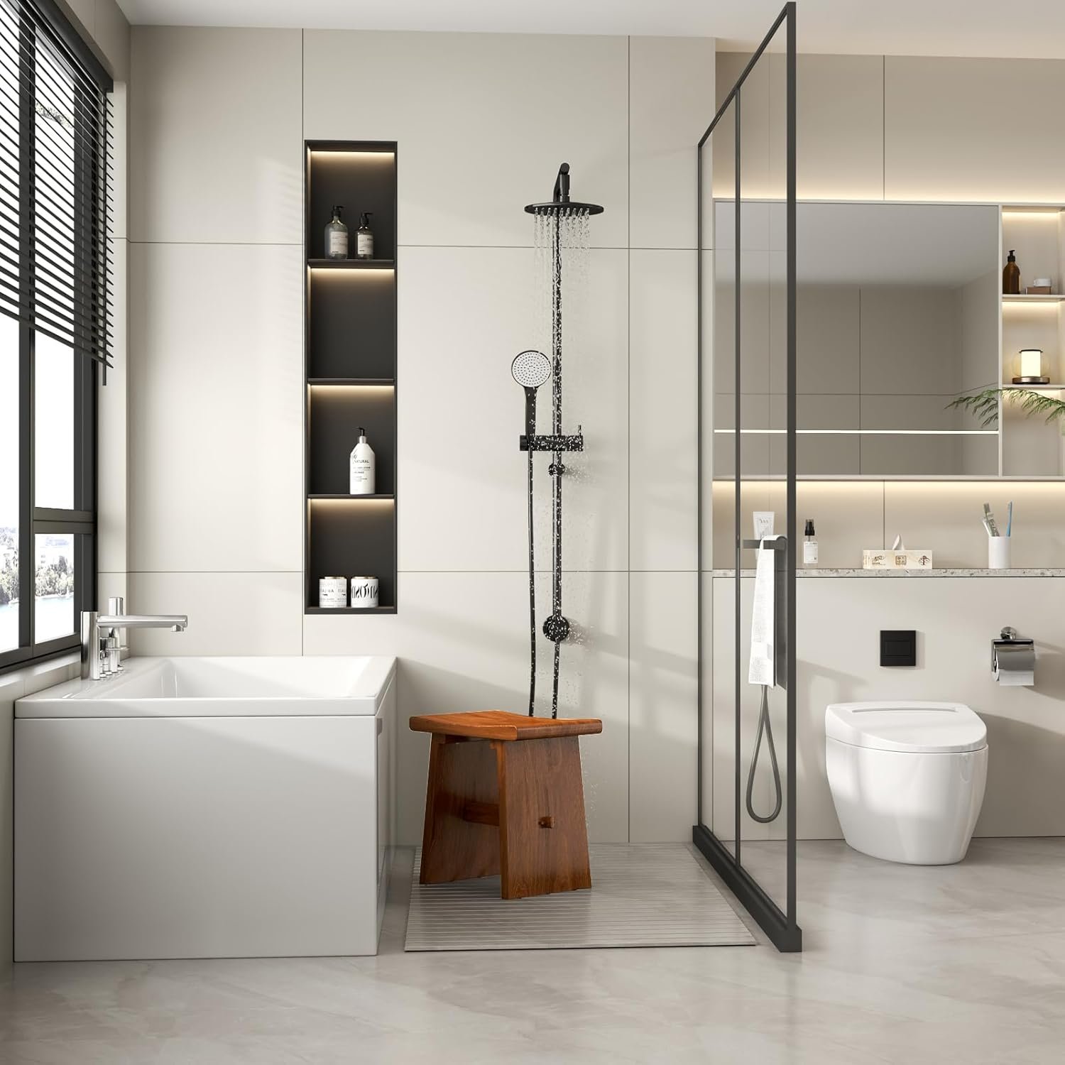 Hardwood+Waterproof Treatment:A shower bench that is not easily deformed or moldy.