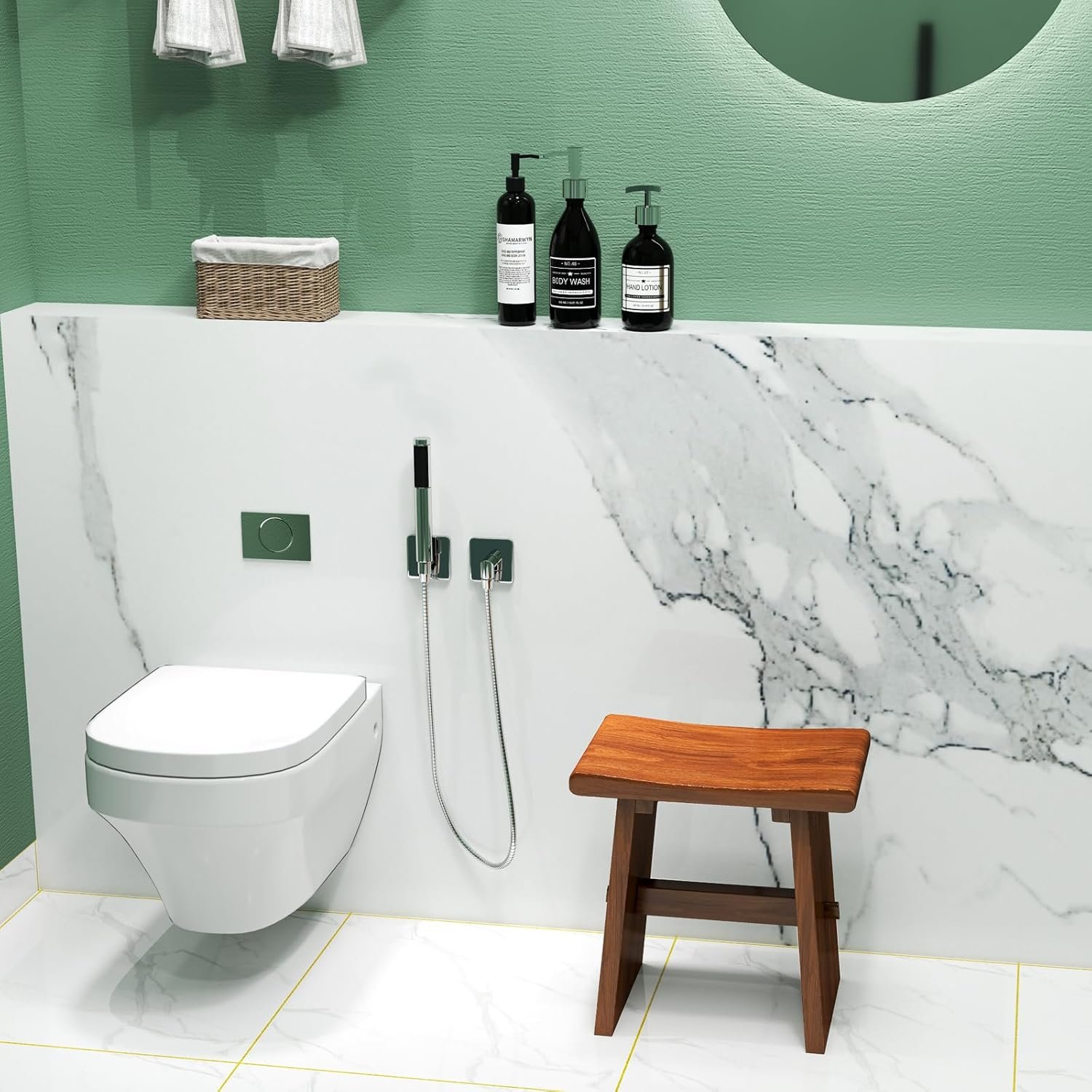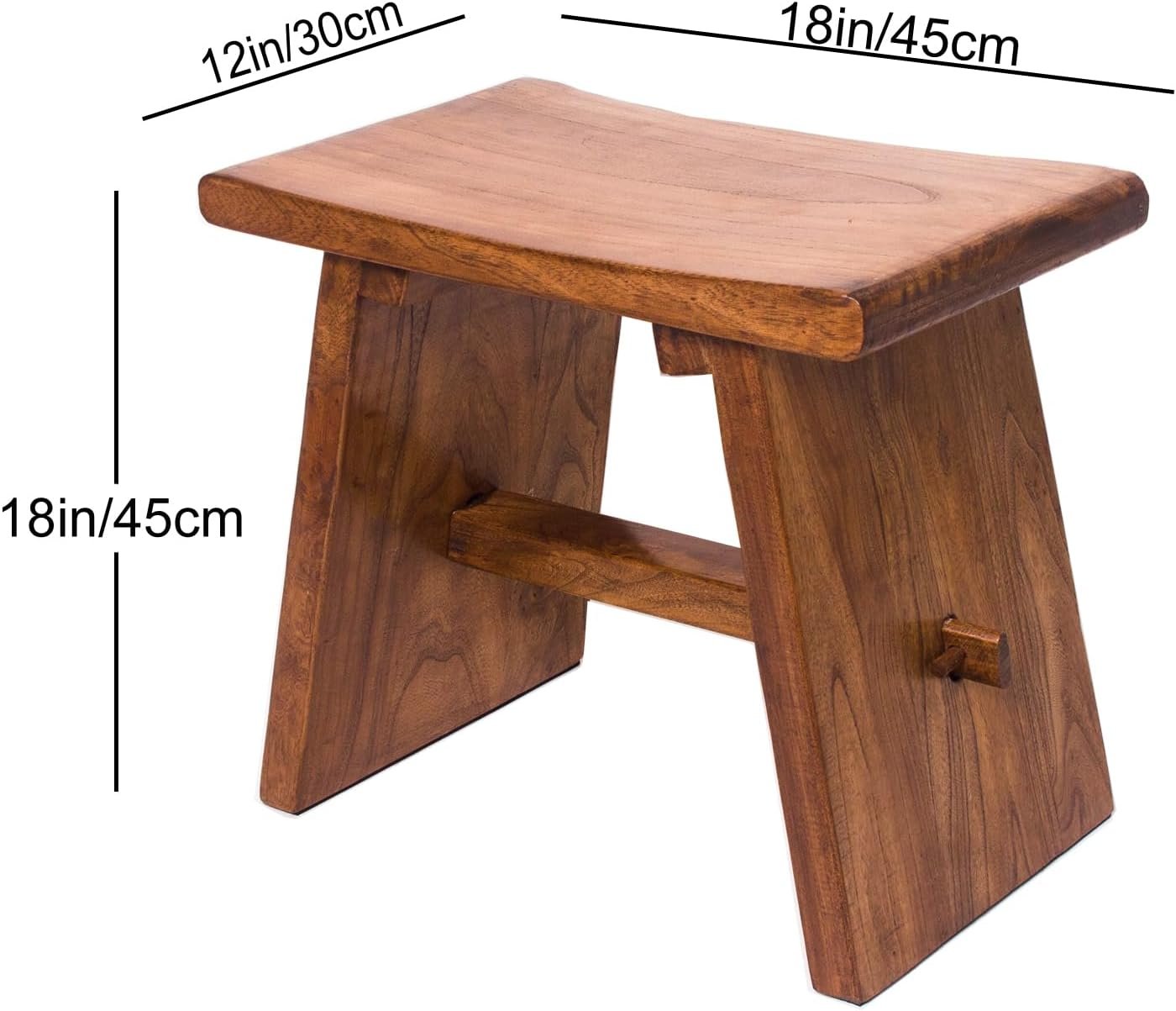 Solid Wood Accent Teak Shower Stool 18″ Shower Bench Rustic Garden Seating Chair for Inside Or Gardening Decor Outdoor Furniture