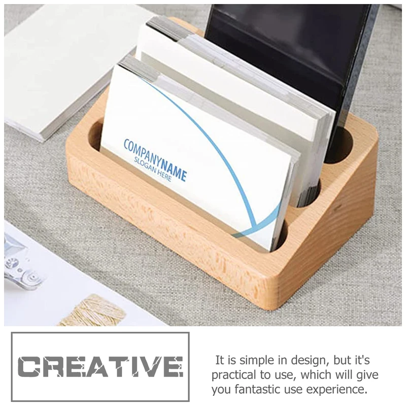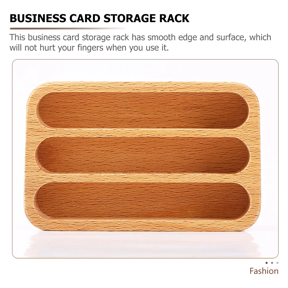 Solid Wood Desktop Business Card Display Stand 3 Compartment Card Storage Rack Card Box Office Supplies Card Holder Organizer