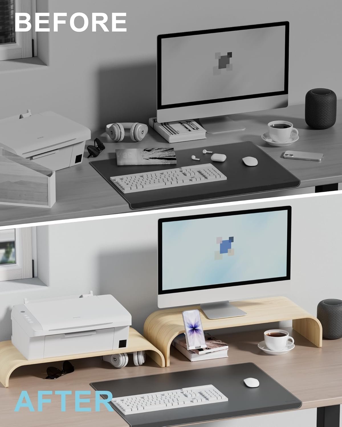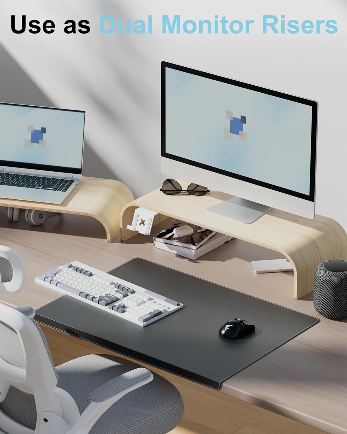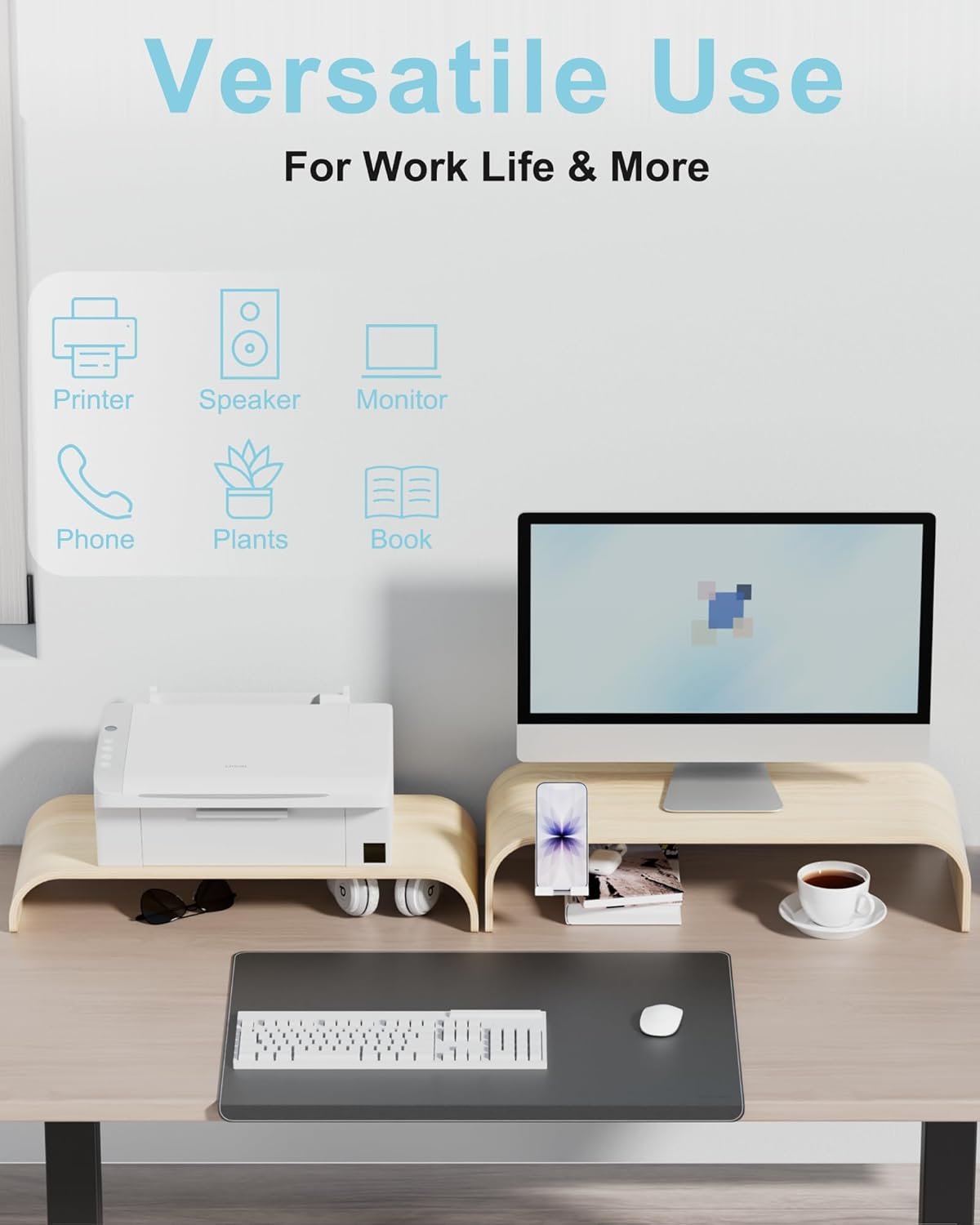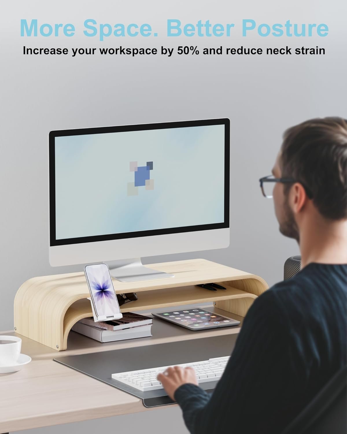 Ergonomic Desk Shelf – Raise screens to eye level with this dual monitor riser. Promotes better posture, reduces neck strain, and doubles as a wooden laptop stand or PC organizer for daily workflow