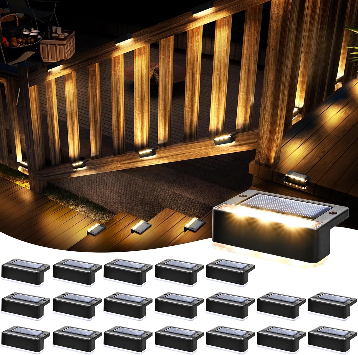 SOLPEX Solar Fence Lights, Solar Deck Lights Outdoor Waterproof Solar Powered for Step, Stair, Balcony,Front Porch,Garden, Walkway,Yard, Patio Decor, IP65 Waterproof (20 Pack, Warm White) 6 LEDs
