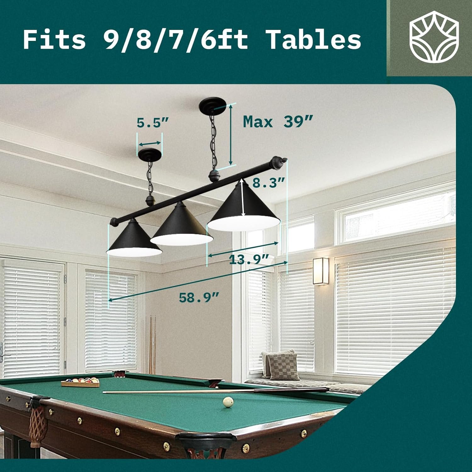 [Full Table Coverage, No Shadows] Ensure even lighting across 6/7/8/9ft tables, no distractions. Perfect for high-ceiling basements, bars, and game rooms. Play with clarity, every shot!