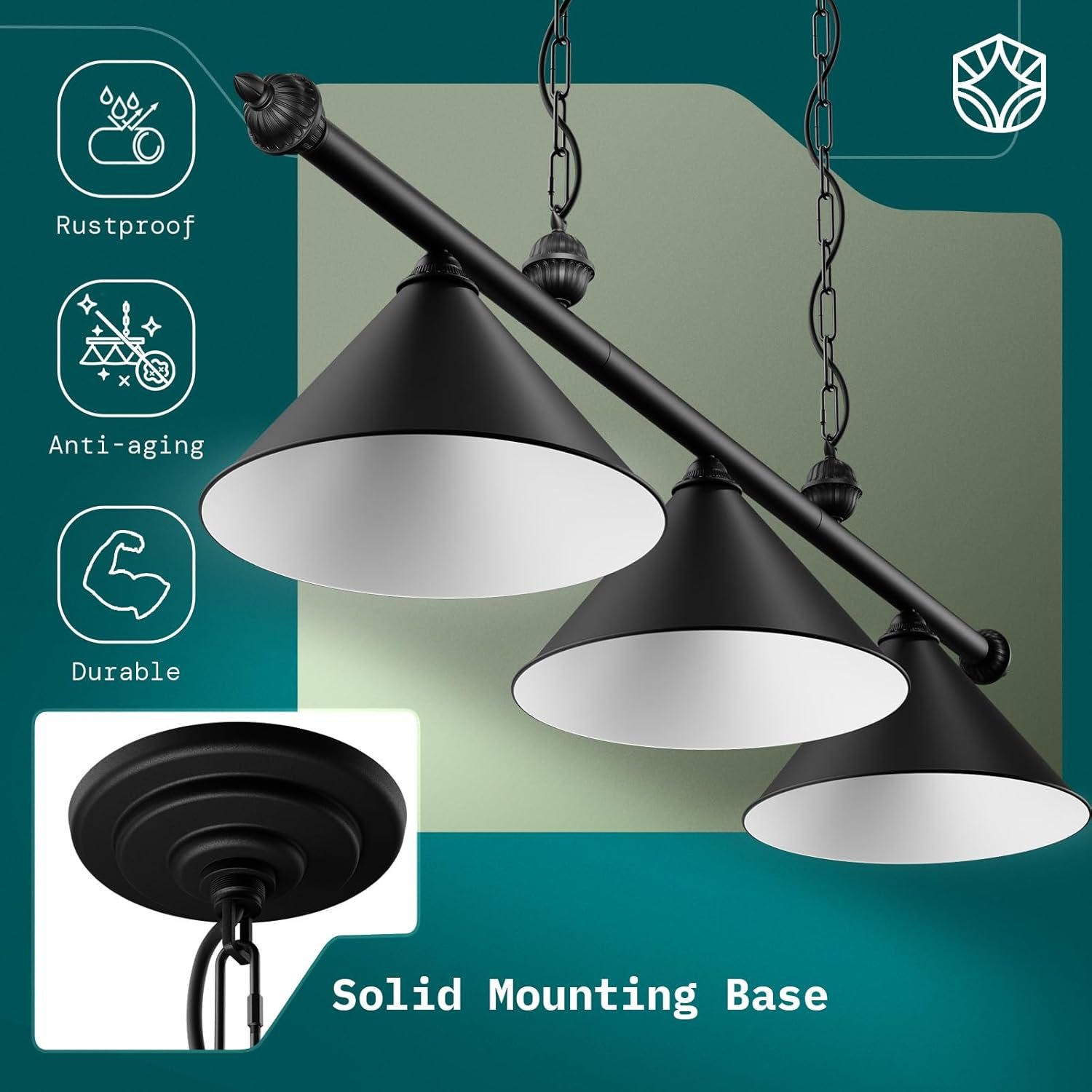 [Durable & Rust-Resistant] Crafted from heavy-duty steel with a sleek matte black finish, this industrial-style billiard light resists rust, scratches, and dents. Stronger and more durable than aluminum fixtures, built to last for years.