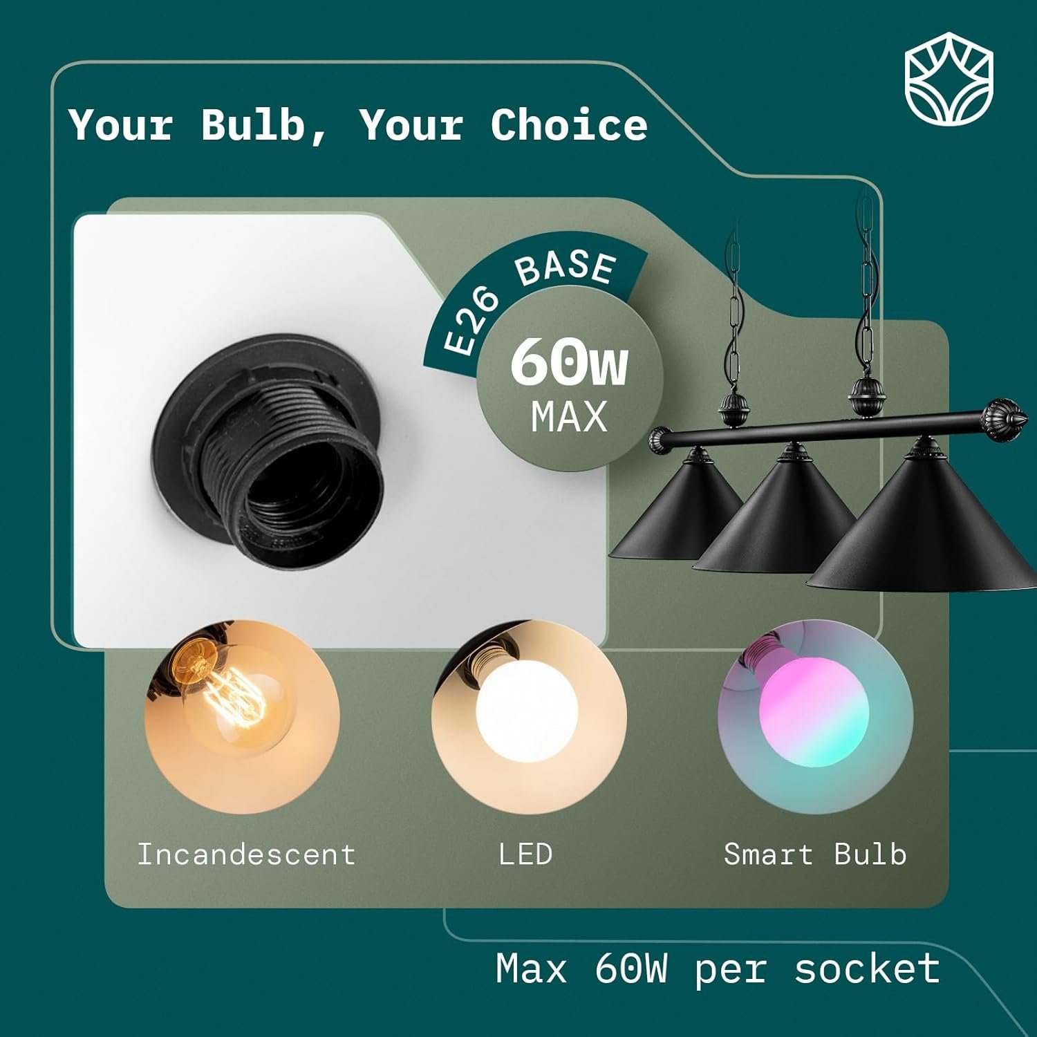 [Universal Compatibility & Effortless Setup] Works seamlessly with standard E26 bulbs (up to 60W per socket, bulbs not included) for customizable brightness. Just screw in your preferred bulbs and enjoy instant lighting!