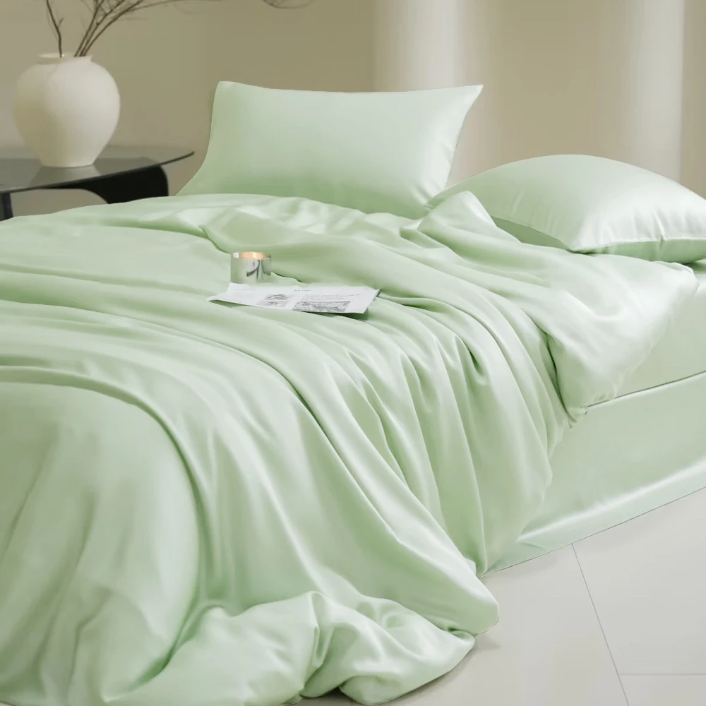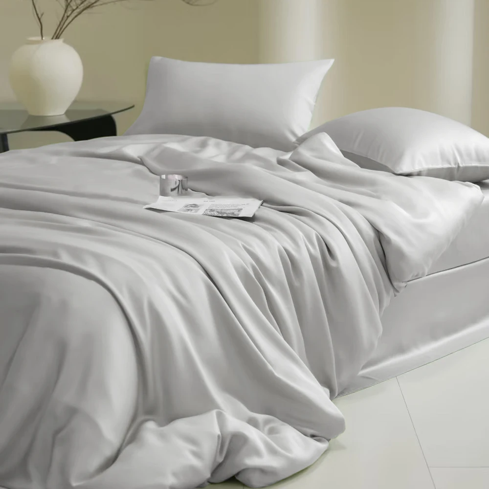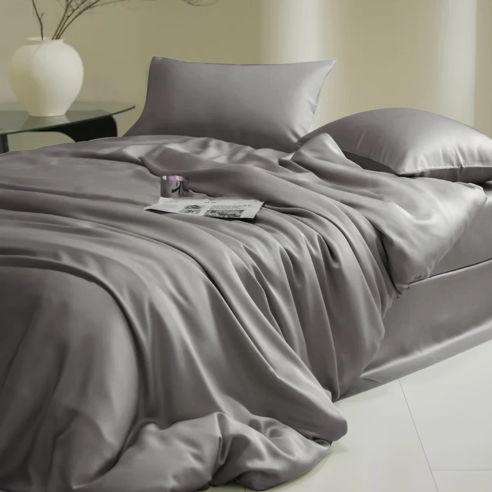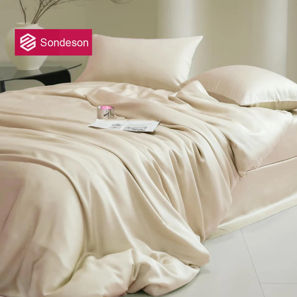 Sondeson 100% Nature Silk Duvet Cover With Pillowcase Healthy Skin Twin Queen King Solid Color Silky Bedding For Sleep Gift