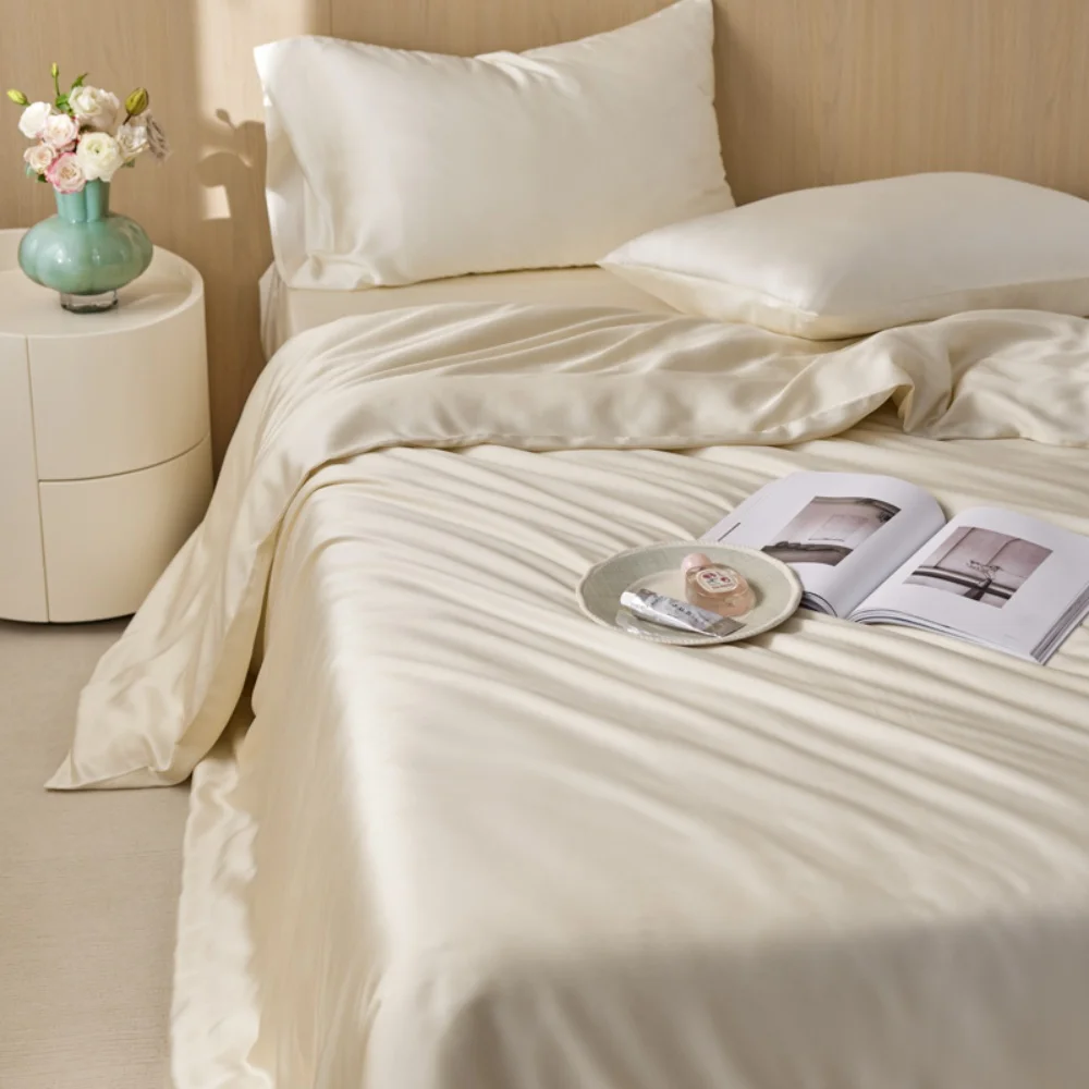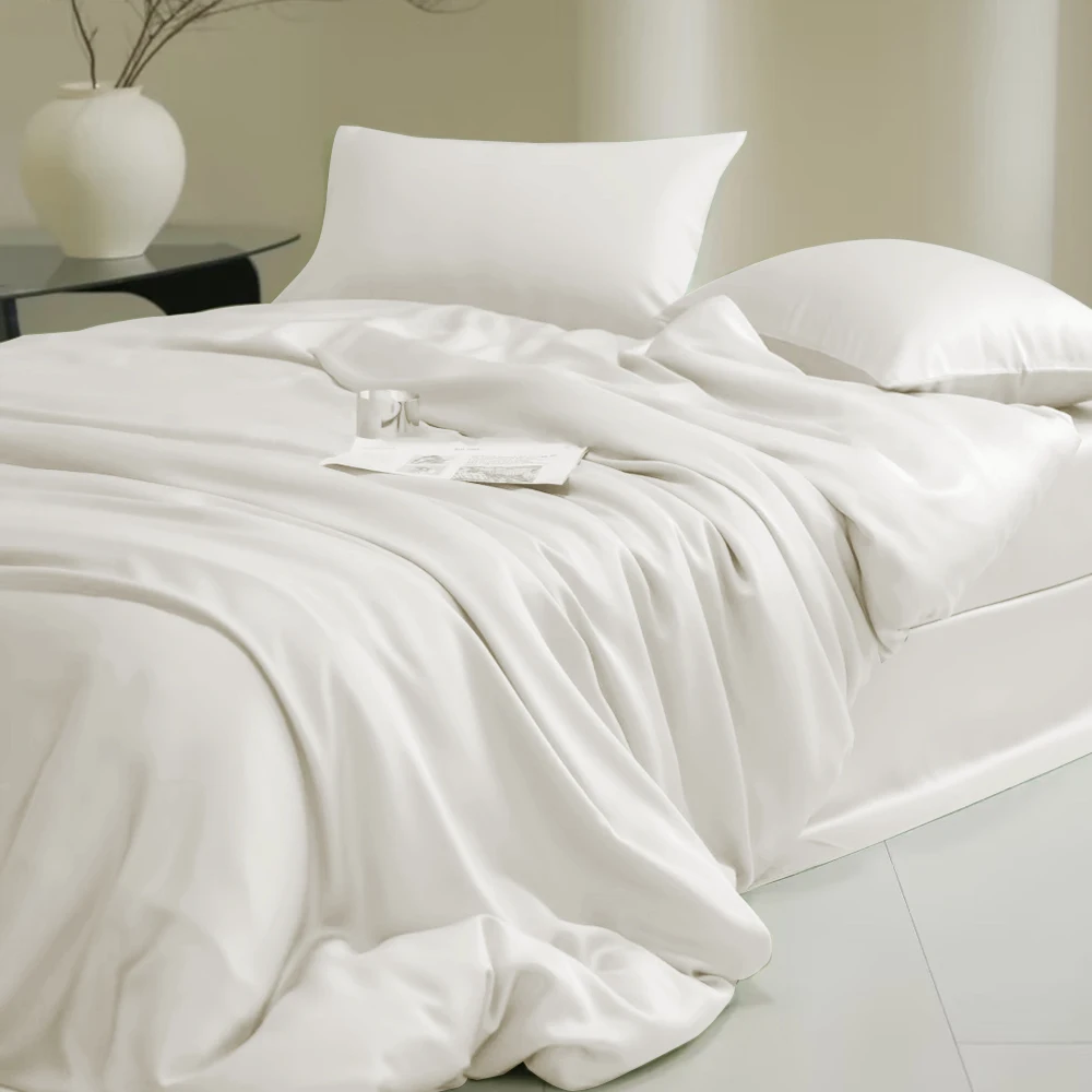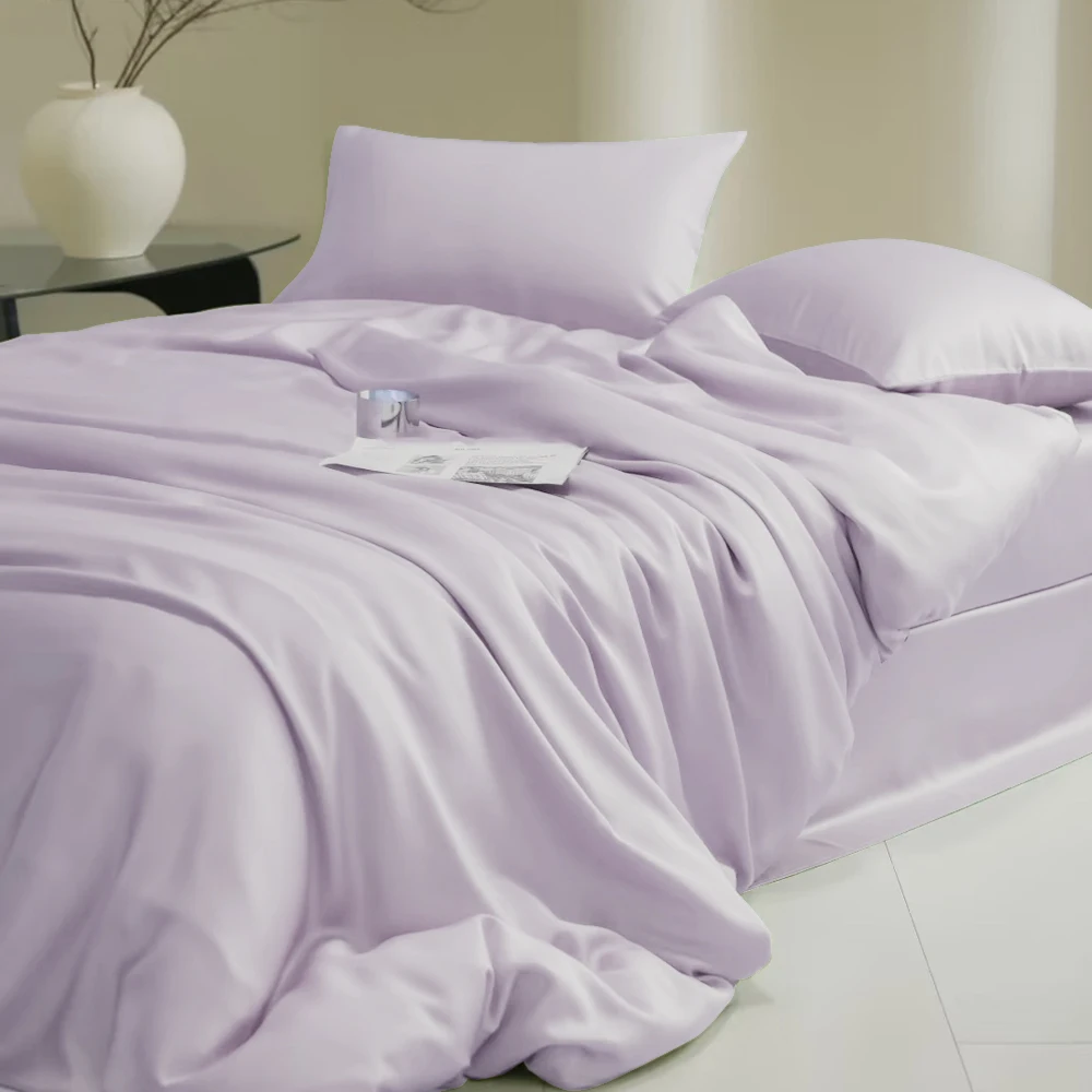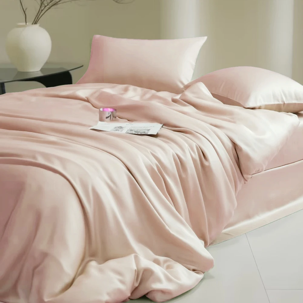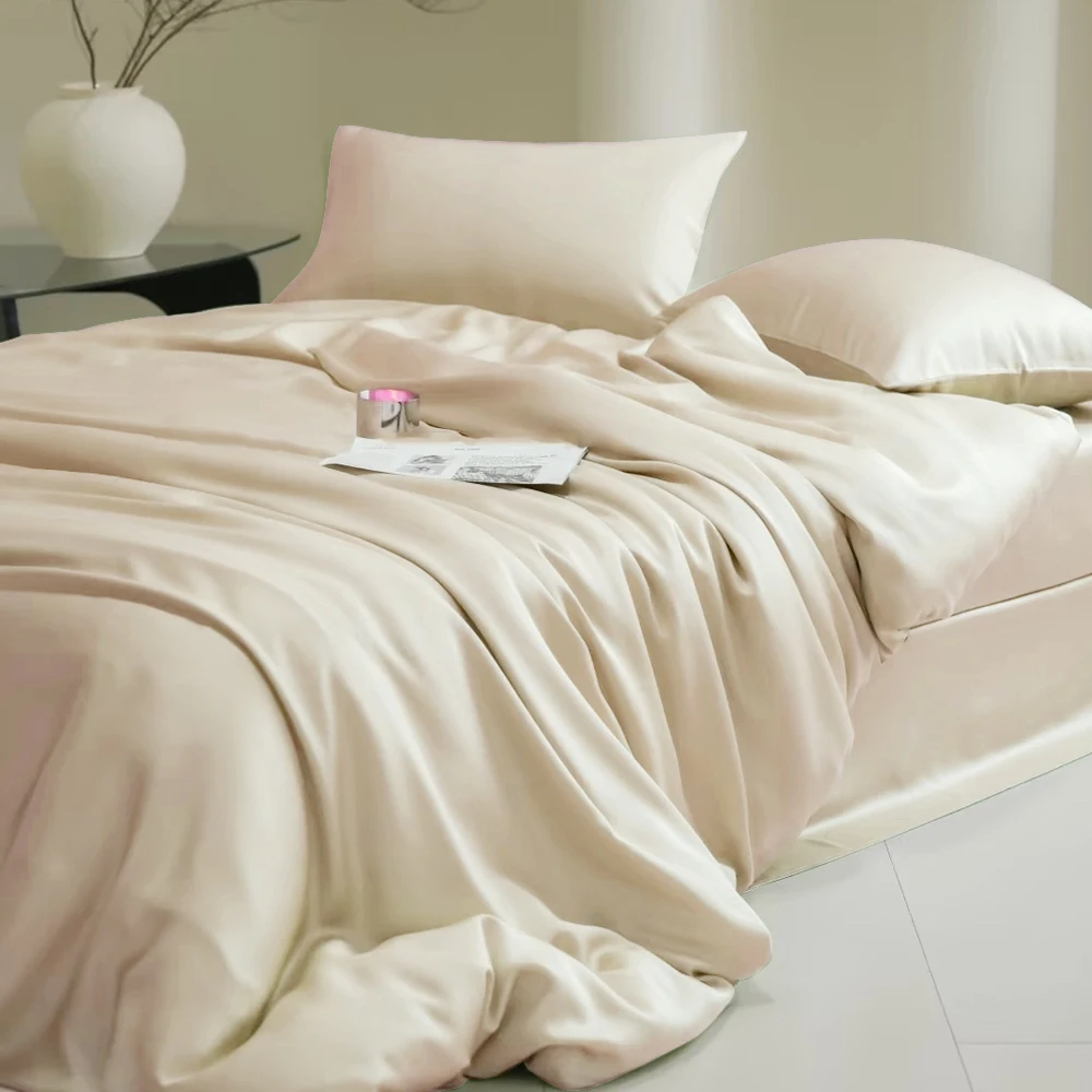 Sondeson 100% Nature Silk Duvet Cover With Pillowcase Healthy Skin Twin Queen King Solid Color Silky Bedding For Sleep Gift