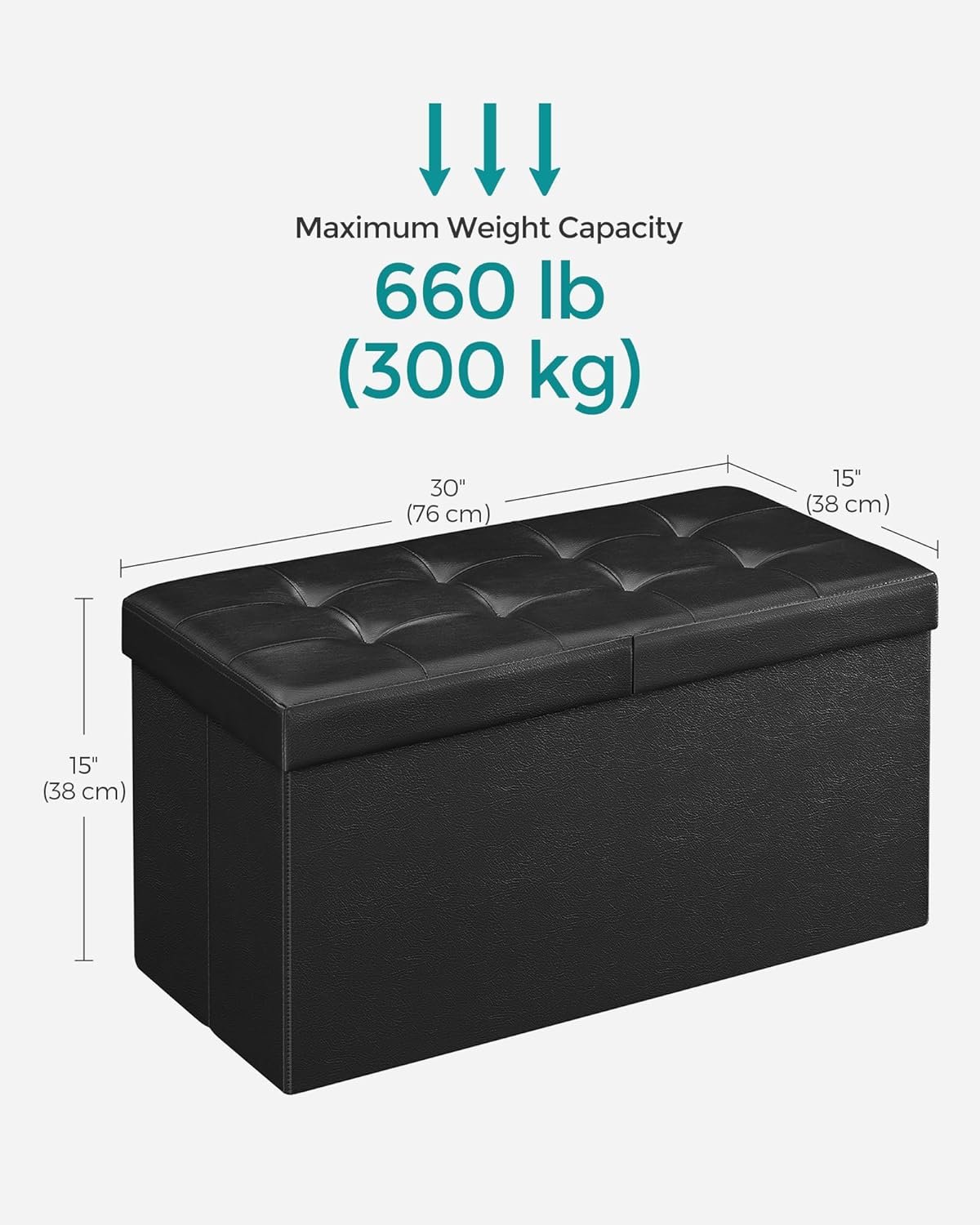 【BUILT TO LAST】Featuring sturdy MDF panels for the tops and sides, and a lid reinforced with metal corner guards, the folding storage bench can hold up to 660 lb (300 kg). Its solid construction ensures it will last for years to come
