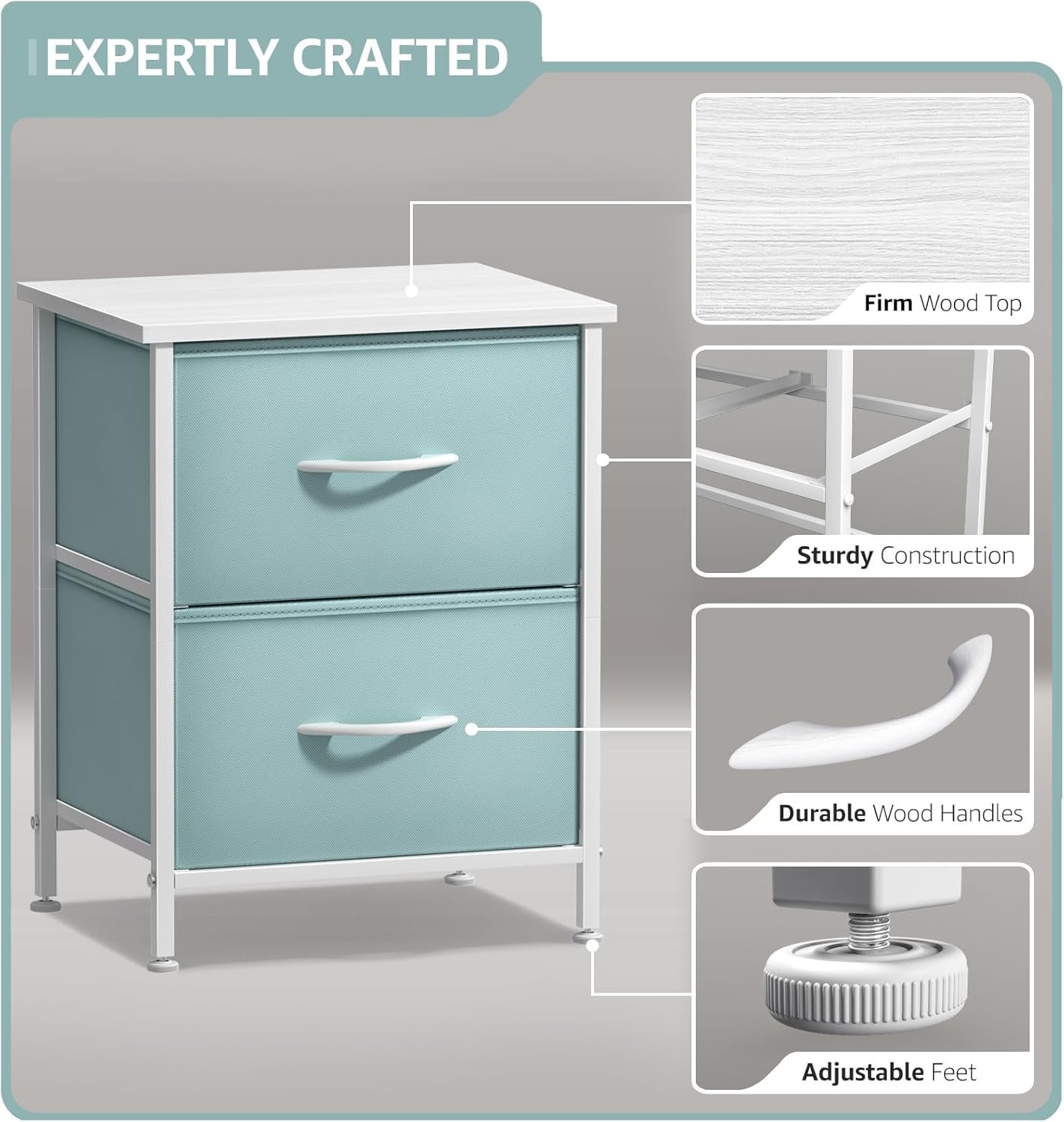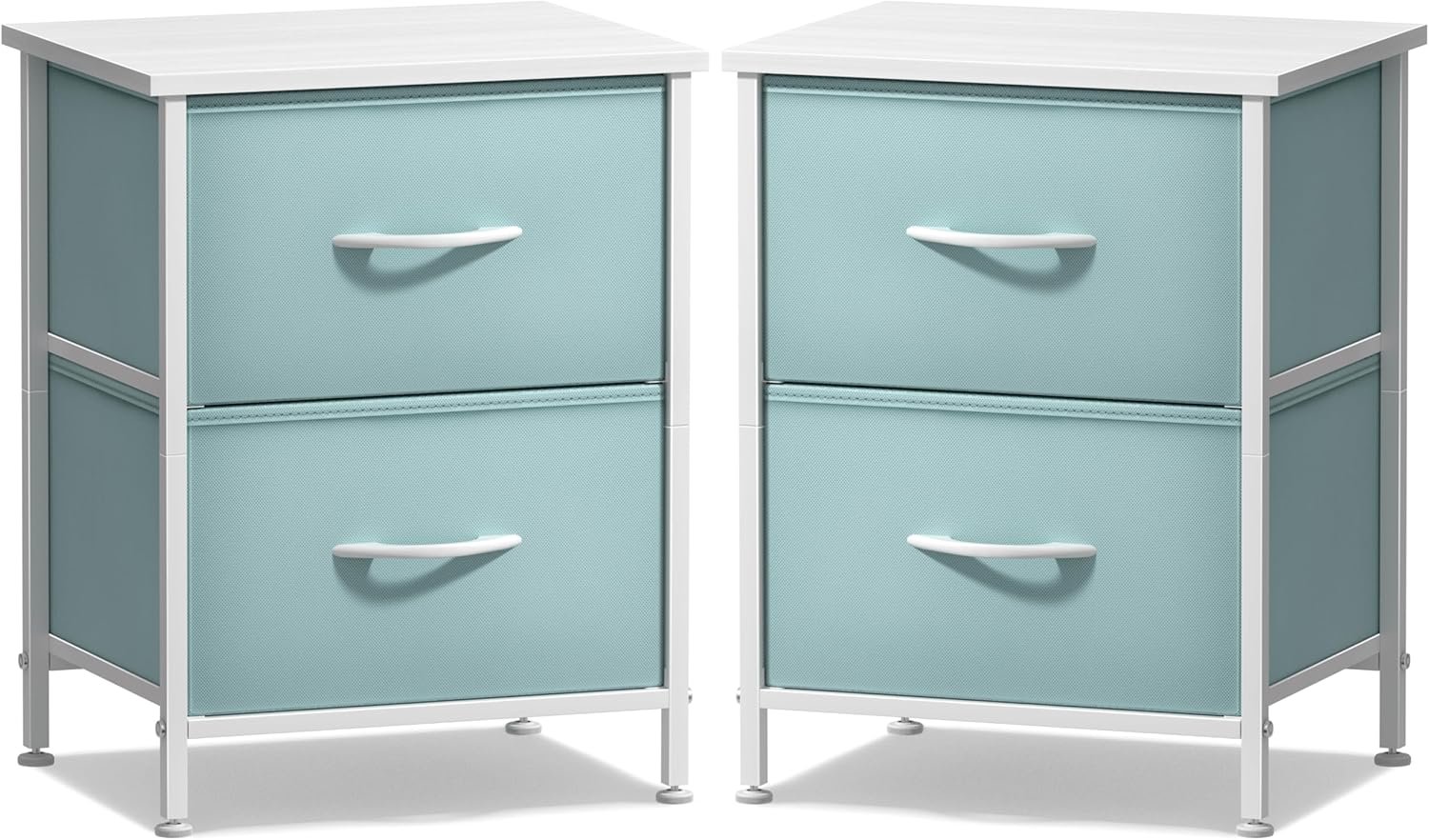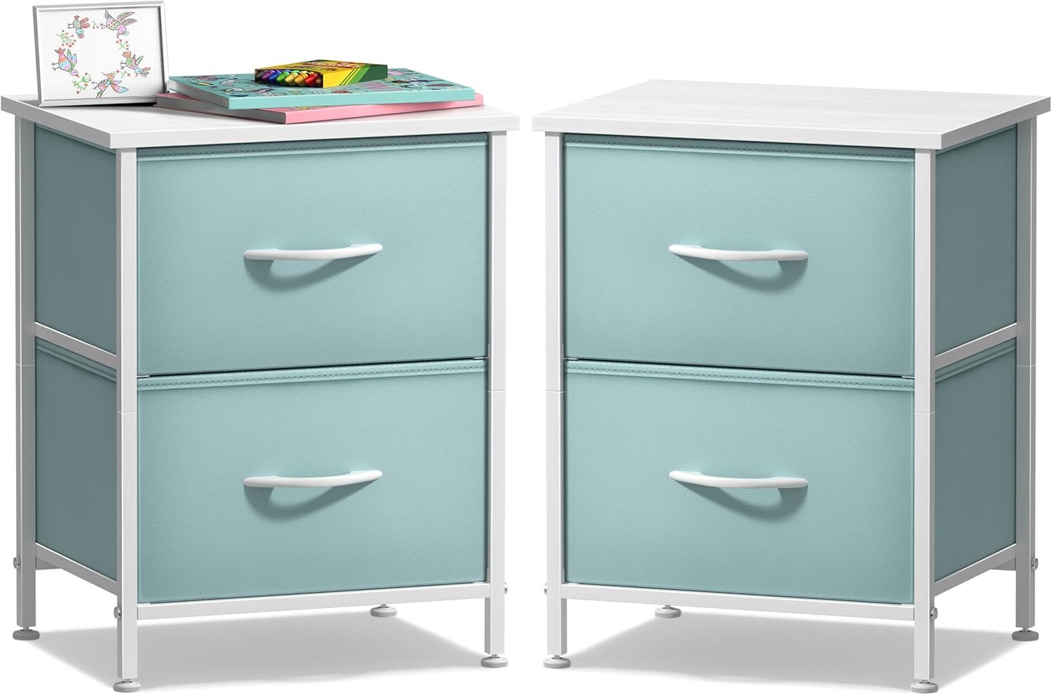 Sorbus Nightstand with 2 Drawers – Kids Bedside Furniture End Table Night Stand – Steel Frame, Wood Top & Easy Pull Fabric Bins – Dresser & Chest for Home, Bedroom Accessories, Office & Dorm (2 Pack)