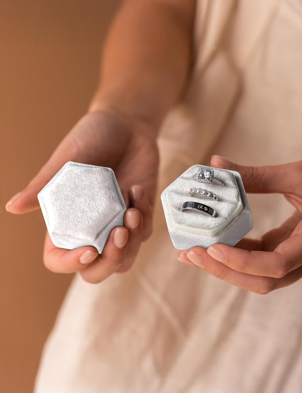 High-Quality Velvet: Velvet ring box is carefully handmade, and the inside and outside are made of soft velvet fabric, giving the ring box a noble appearance and preventing scratches and wear