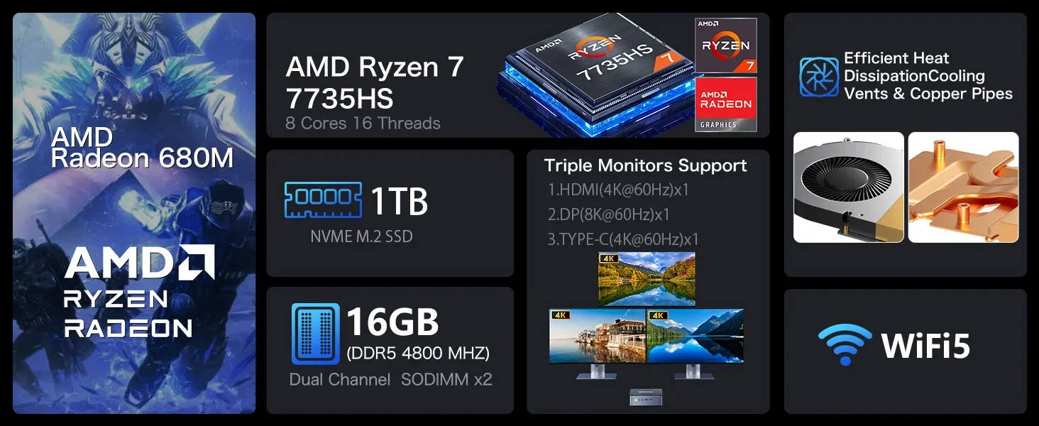 SOYO S2 Pro MINIPC Ryzen 7 7735HS Mini PC Dual Channel DDR5 16GB RAM 1TB ROM NVME SSD Windows11Pro Portable Gaming Computer Host