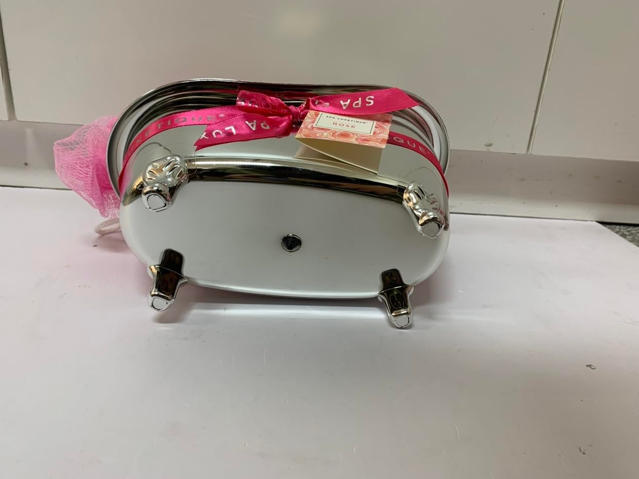 Skincare Home Gift Set: The rose spa gift basket includes 2 bath bombs, bubble bath, shower gel, body lotion, body butter, bath salt, bath puff, and a silver bathtub holder