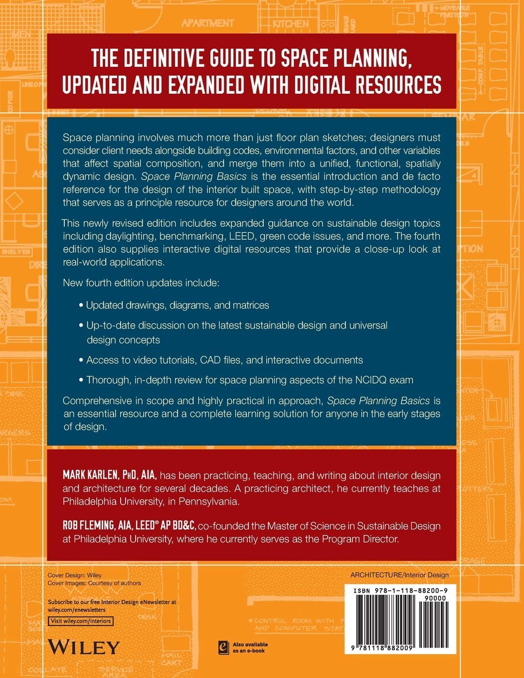 Proper space planning goes way beyond sketching a preliminary floor plan. Successful implementation includes a balanced integration of code compliance, system support, and adherence to the client’s functional needs. Sustainability adds a new, important layer of complexity. This book shows you how to approach space planning in a way that ensures all considerations are met, and nothing gets lost in the process.
