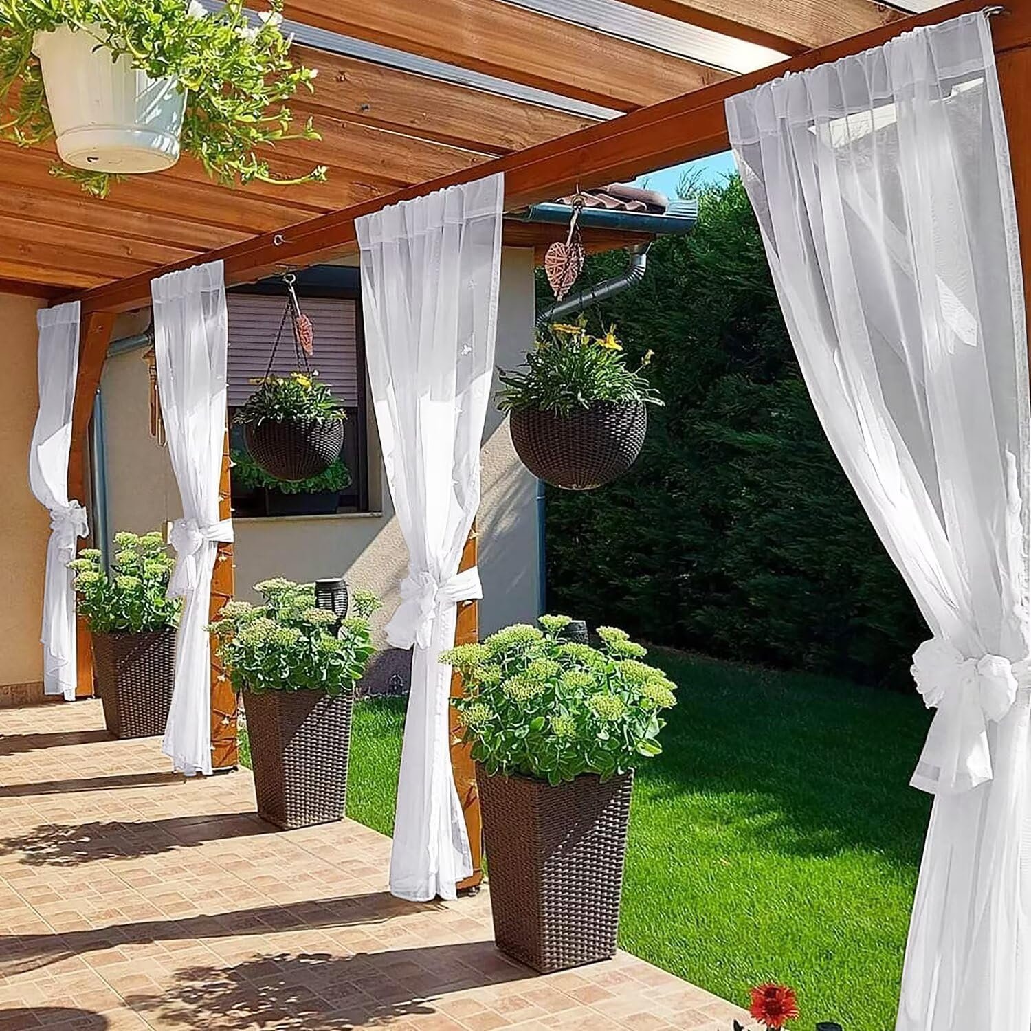 WATERPROOF SHEER FABRIC: SpaceDresser outside curtains are made of 100% polyester fabric with the same color on the front and back.The outdoor sheer drapes add more romance and elegance to your decor.