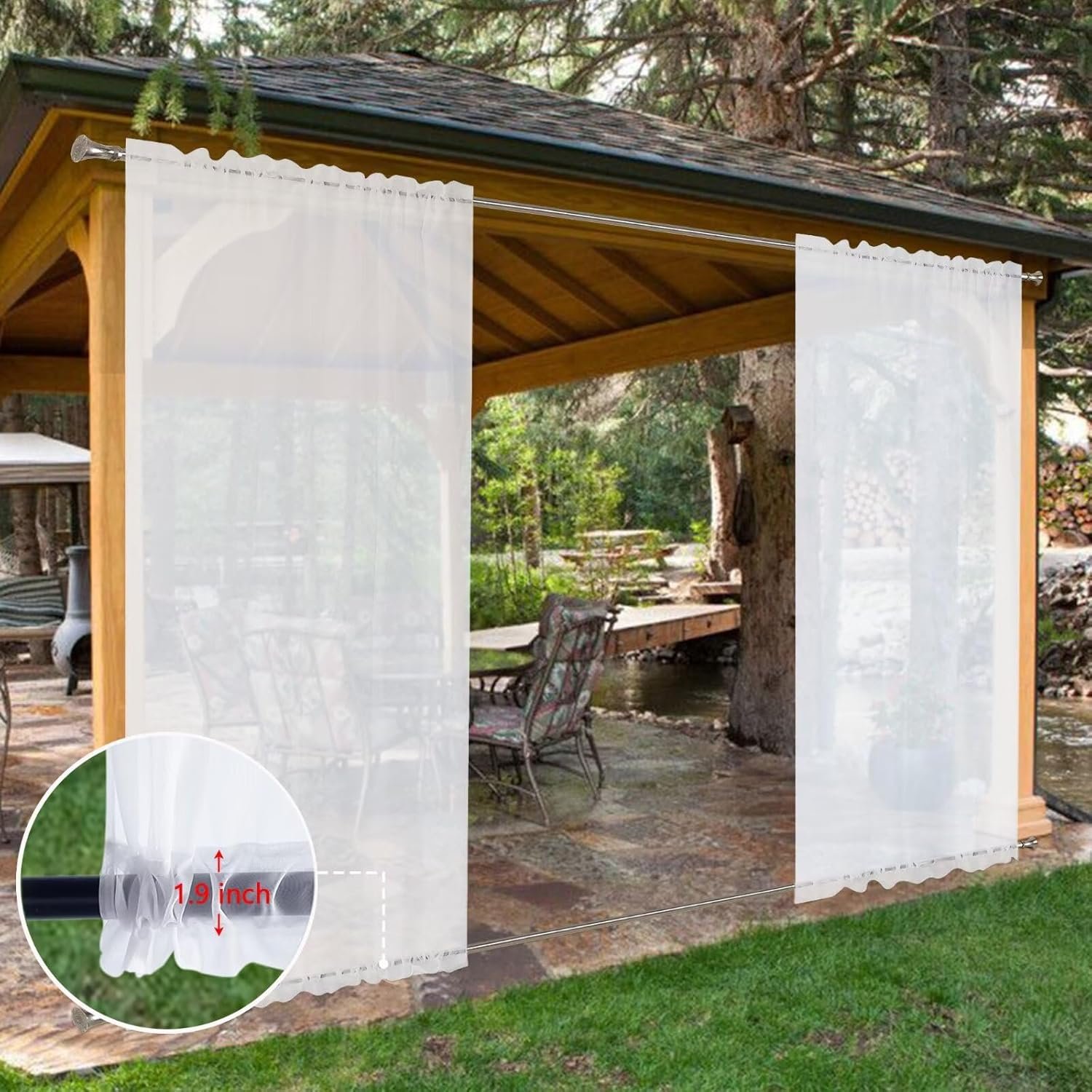 SpaceDresser Waterproof Outdoor Sheer Curtains for Patio – 2 Panels Rod Pocket Indoor Voile Sheer Curtain for Living Room,52W x 84L inch, White