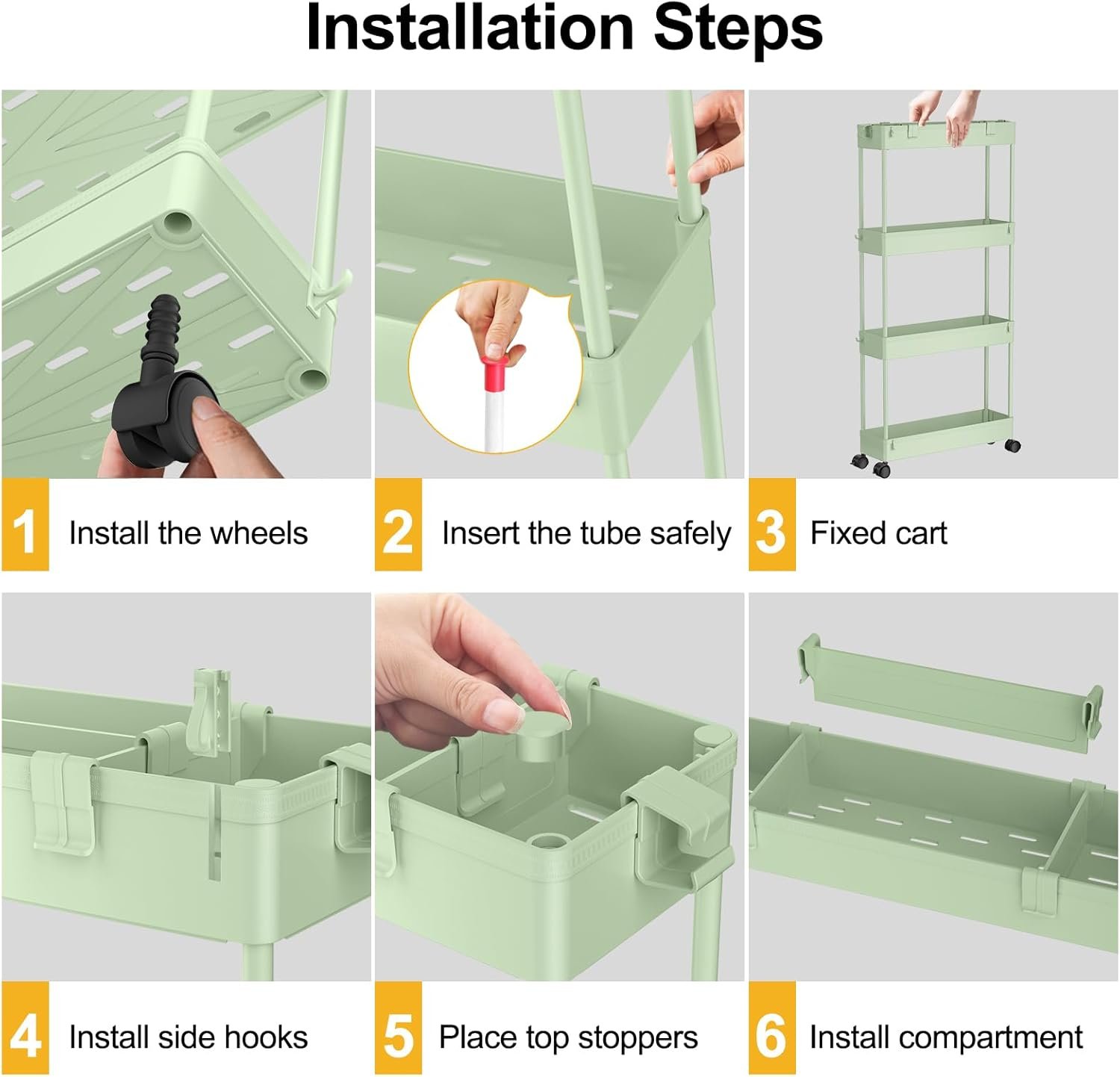 Easy to Install: The mobile utility cart is made of high-quality plastic, providing you with stable and durable quality. At the same time it is very easy to install, so you can easily install successfully without additional tools