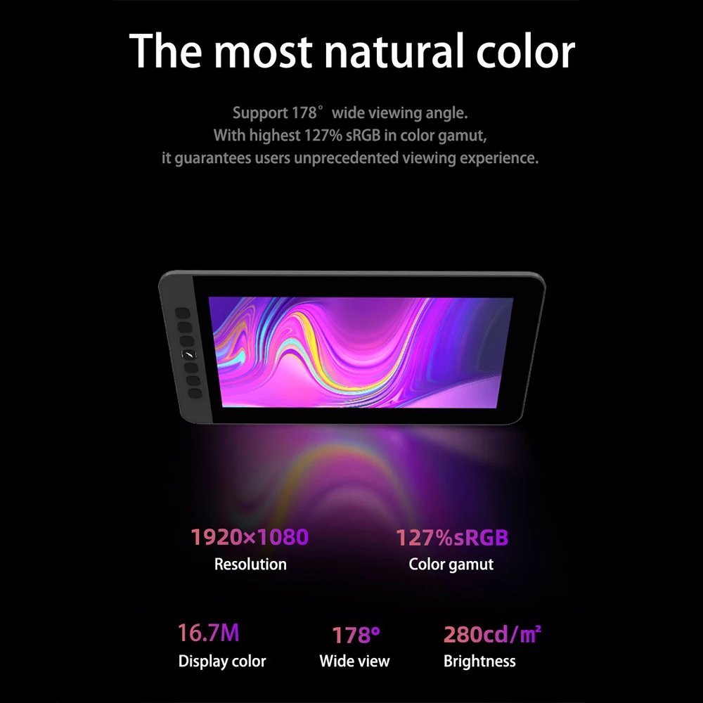 -With 654g net weight, 11.6 inch M12 drawing monitor is engineered for great convenience with carefree creation experience, offering you sufficient working space. And it is easy to carry the pen display to anywhere you need, like the workplace, school, outdoor painting and a temporary trip so that you can use the tablet for on the go creation. You are free to record your inspiration without limits.