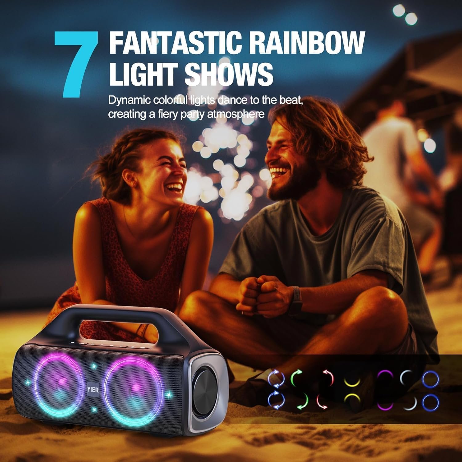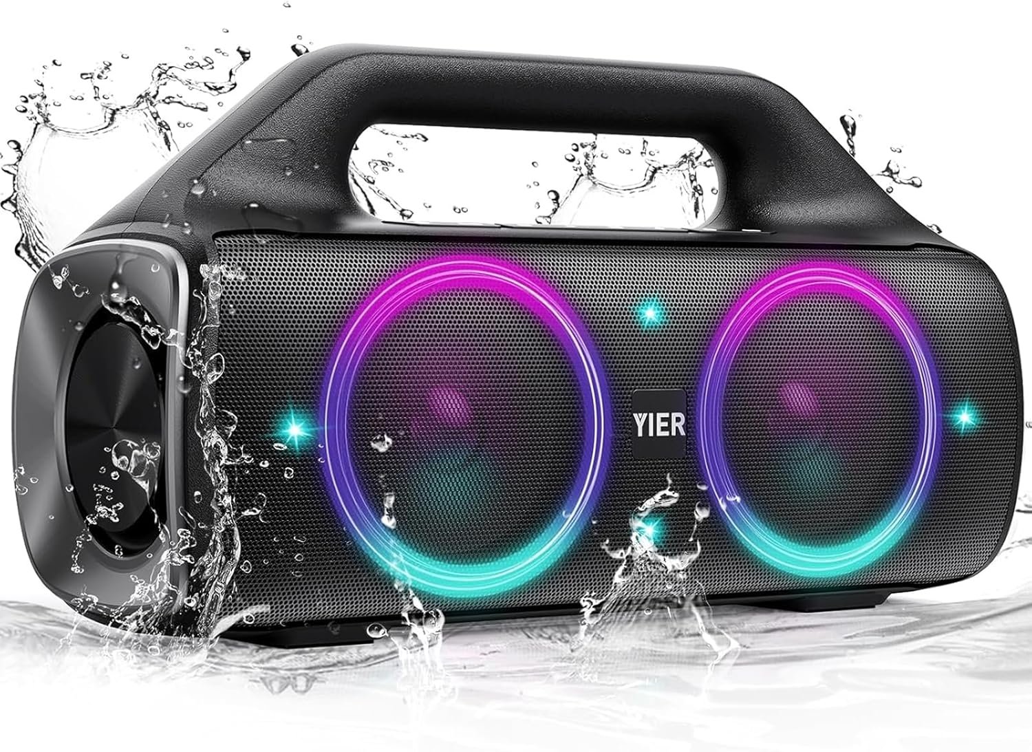 Speakers, YIER 80w (Peak) Portable Wireless Speaker with Lights, Stereo Loud Sound, IP67 Waterproof, Deep Bass Outdoor Speakers Bluetooth 5.0 Dual Pairing for Home Party Beach Camping, Gifts