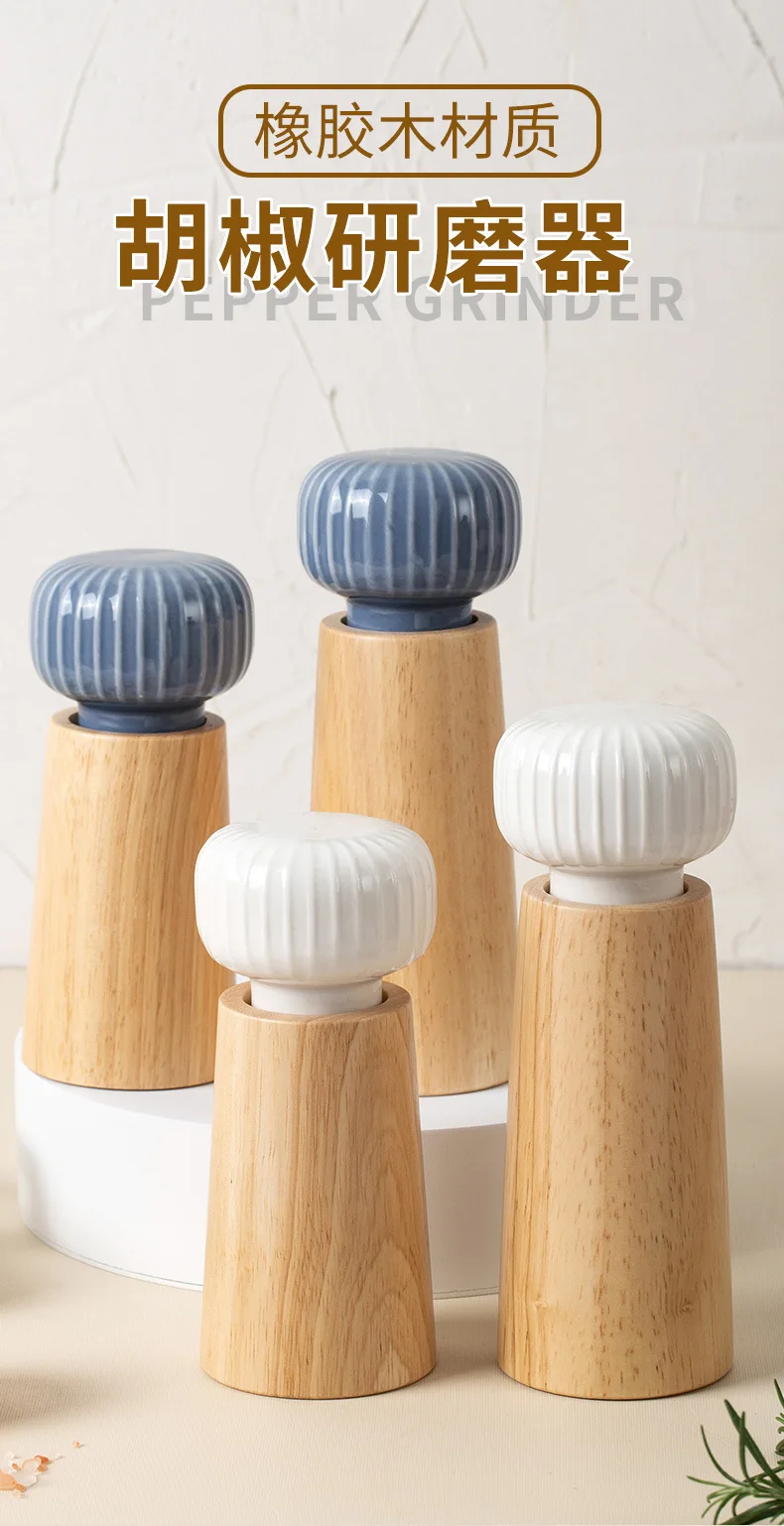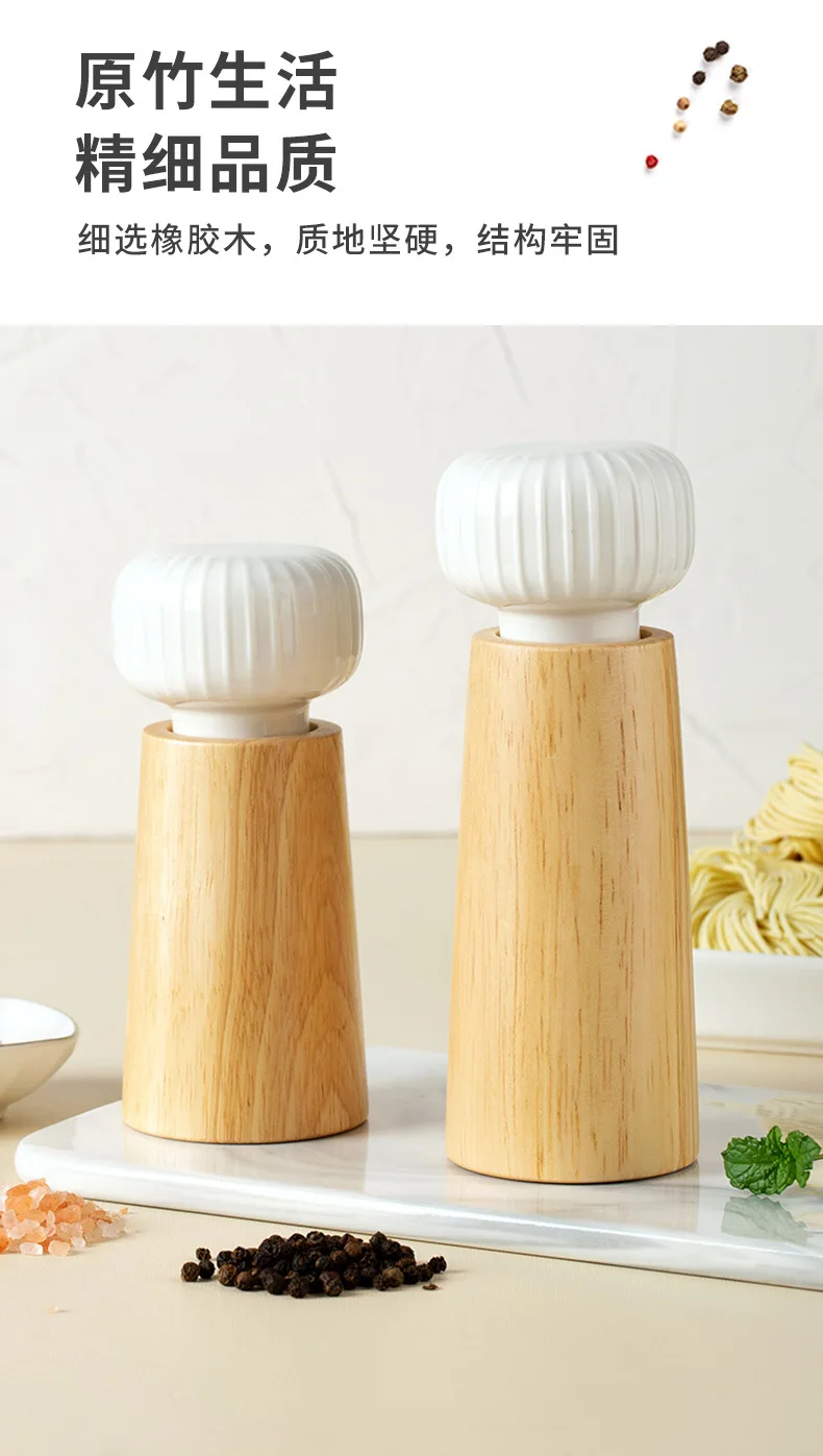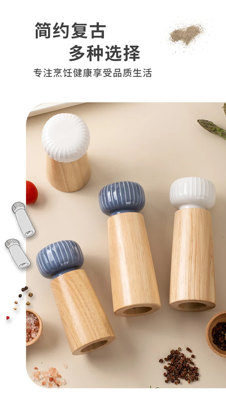 Spice Mill Salt and Pepper Grinder Refillable Shaker Manual Herbs Grinder Adjustable Ceramic Core Wooden Bottle Kitchen Tools