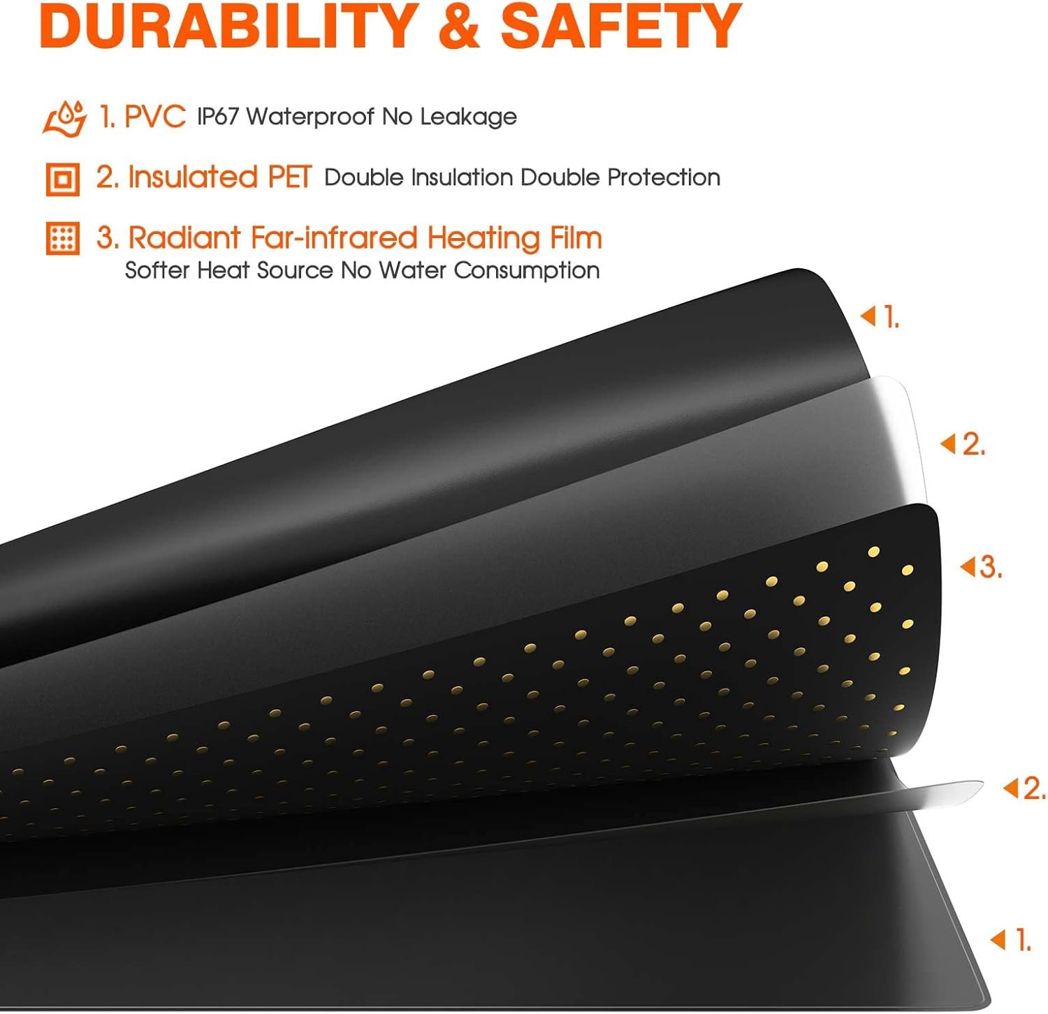 [PREMIUM MATERIAL & RELIABLE QUALITY]: The plant heating pad has a five-layer structure, the outer layer is made of heavy-duty PVC material, and the intermediate heating film is wrapped in a double-layer insulating PET layer, which complies with MET and UL standards, and has multiple protections. It is not easy to be damaged, safer to use, sturdy and durable, with a service life of more than 30,000 hours.
