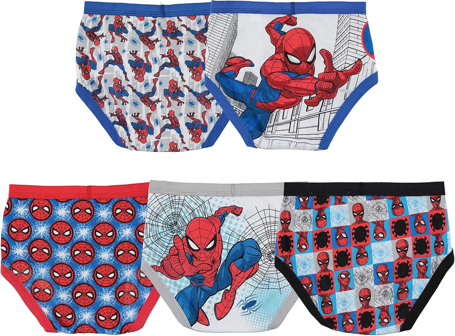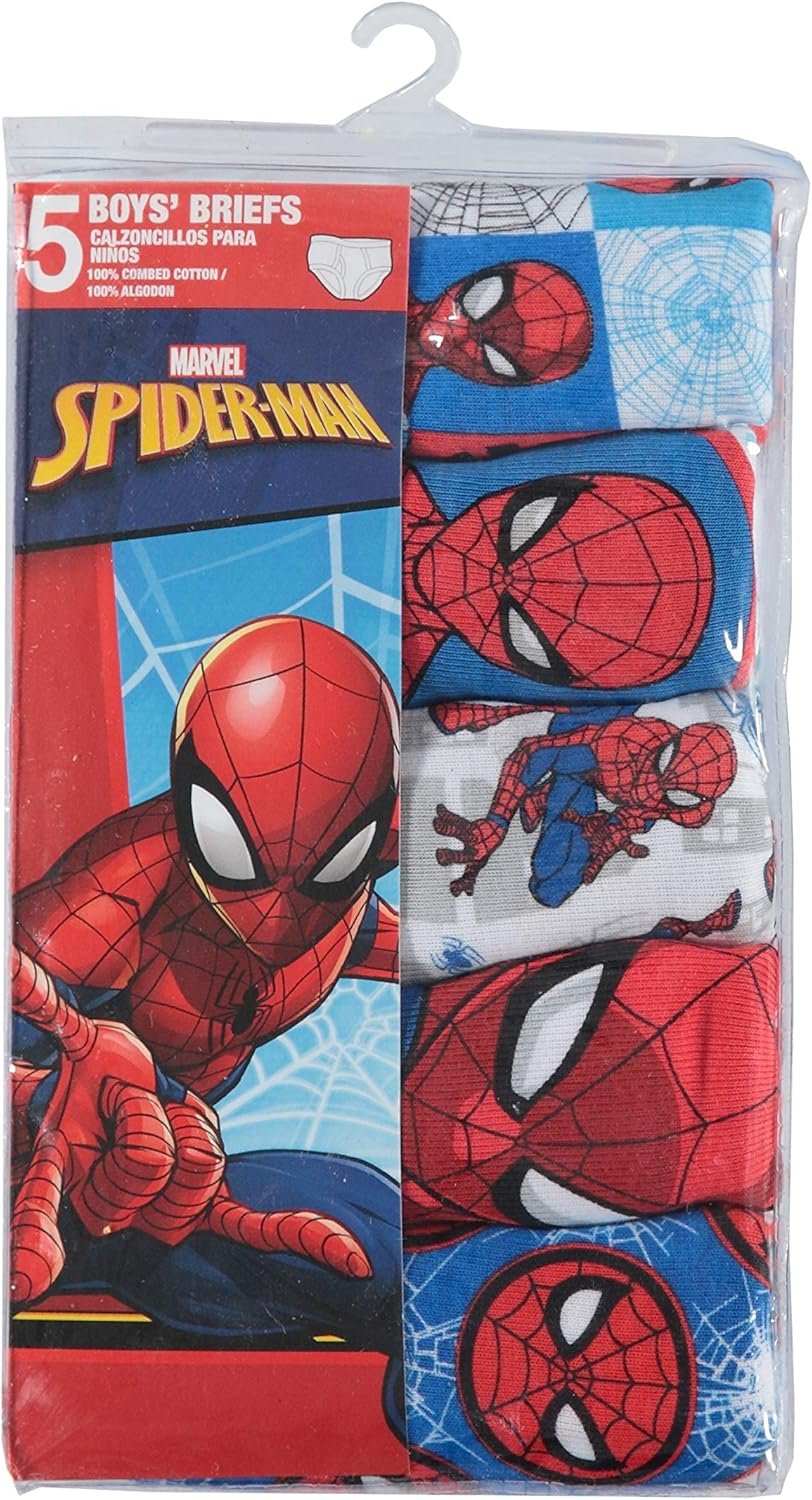 Spider-Man Boys’ 100% Combed Cotton Brief Multipacks with Multiple Print Choices Available in Sizes 4, 6, 8, 10, and 12