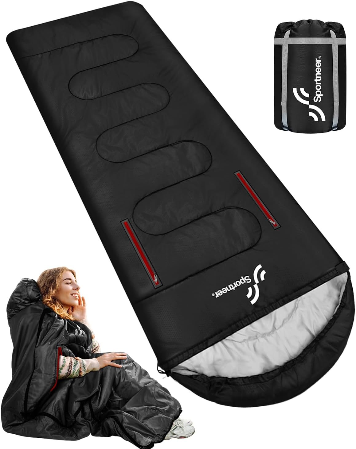 Sportneer Sleeping Bag – Wearable for Adults & Kids with Arm Zipper Holes in Cold & Warm Weather, Waterproof Portable Sleeping Bag for Camping, Hiking, Backpacking, Outdoor Travel