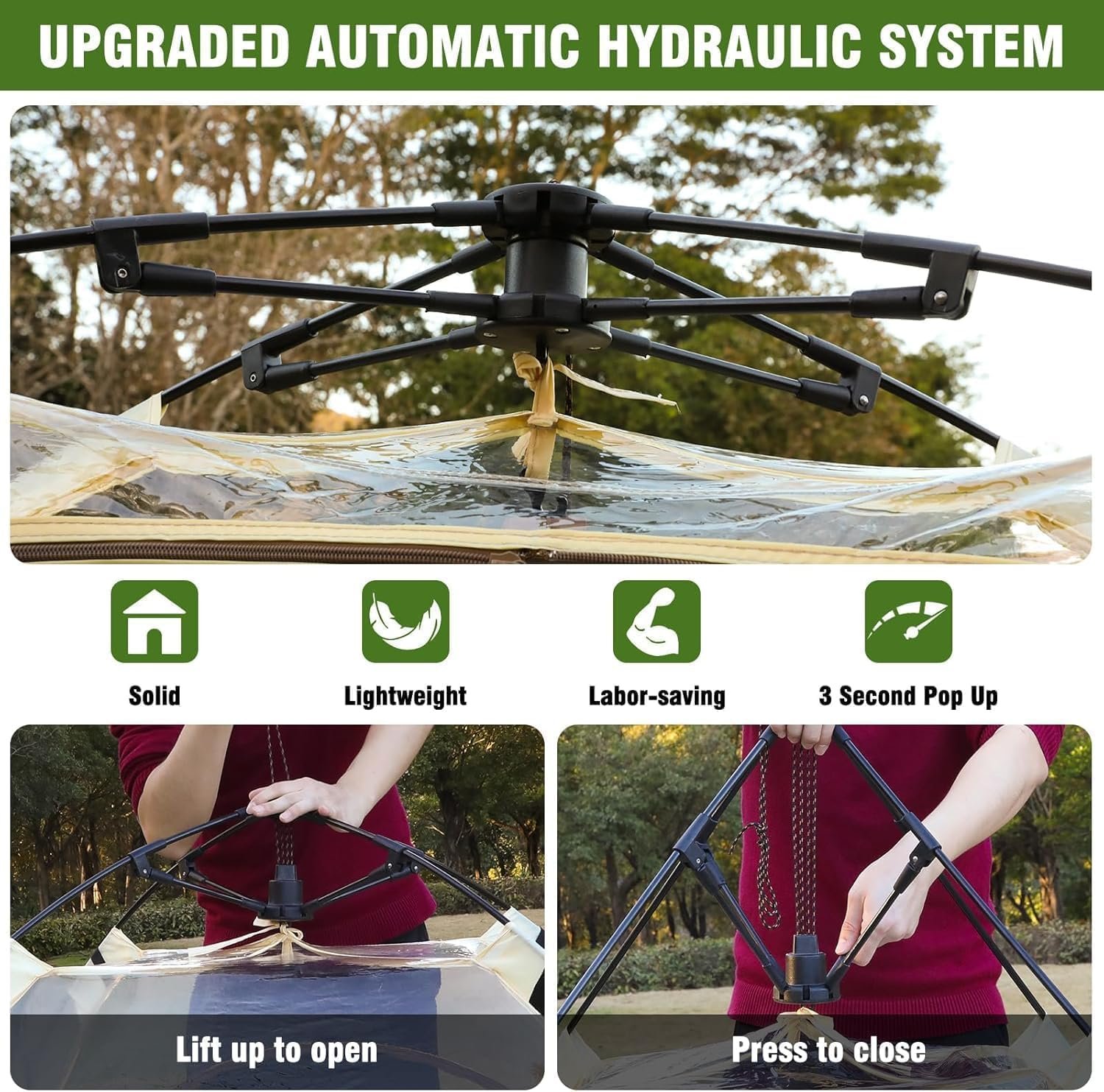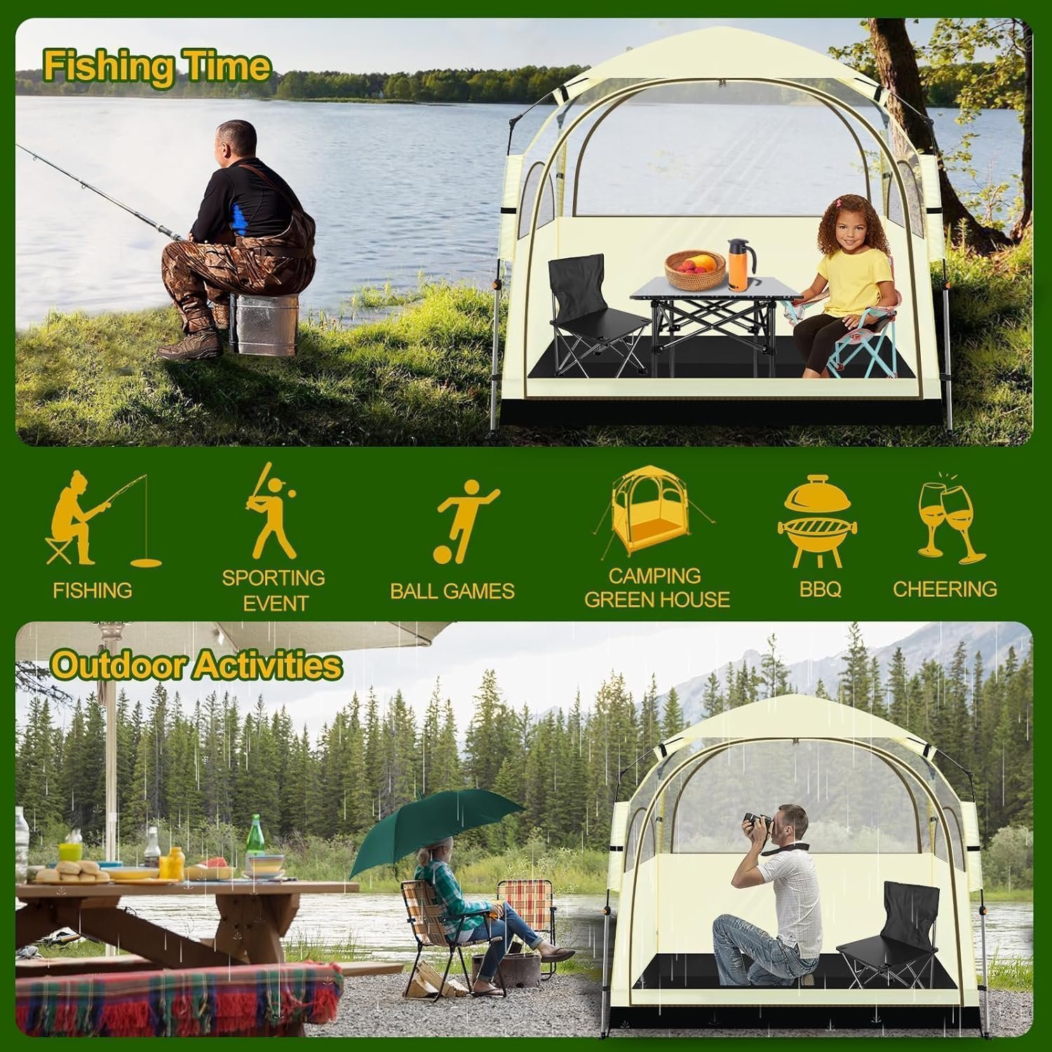 All Weather Sport Shelter: This sports tent for outdoor activities features an automatic frame for quick setup. It is made of a sturdy fiberglass frame and solid fabric, with excellent wind resistance and waterproof functionality, making it the perfect all weather shelter for outdoor enthusiasts.
