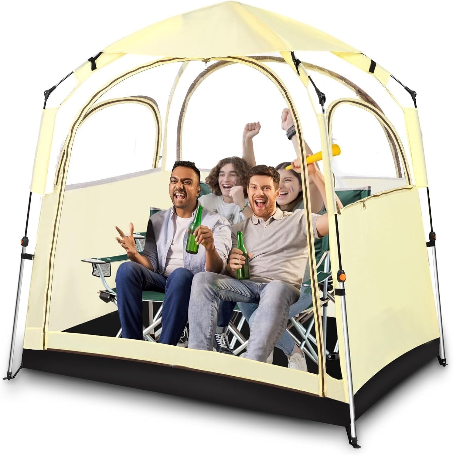 Spacious and Comfortable Space:The sports tent measures width (51.1″) x length (70.8″) x height (65″), and weighs only 10.78 pounds. The all weather sports tent provides a spacious and comfortable shelter, accommodating up to 1-4 people.