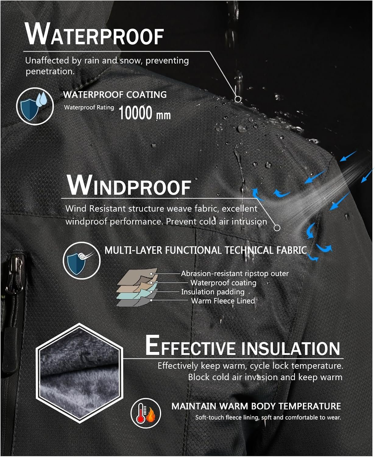 SPOSULEI Mens Skiing Jackets with Hoode Snowboarding Waterproof Fleece Liner Coats Windproof Winter Raincoat Multi Pockets