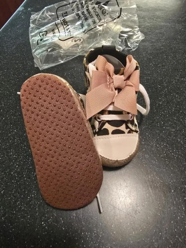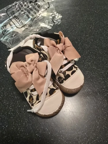 How cute!!! Have a matching outfit to go with the shoes, of course. The quality is greathe bow at the top and even a soul.
