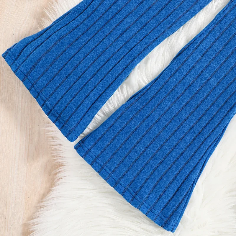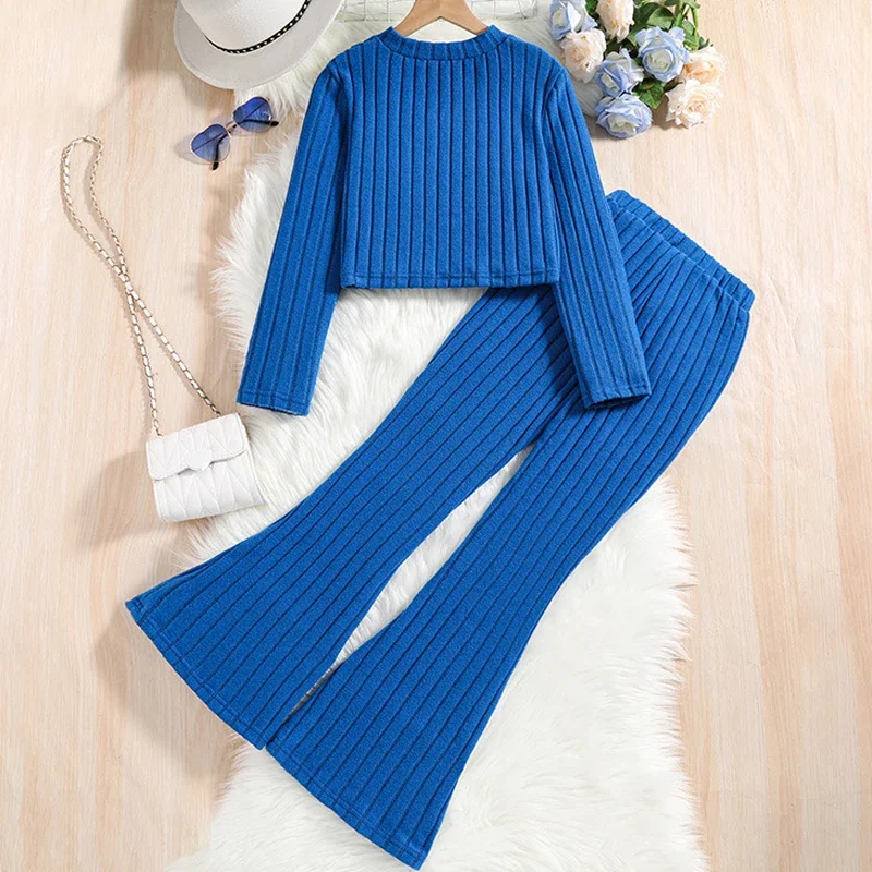 Spring Autumn Girls Clothing Set Solid Color Pit Strip Long Sleeve Sweatshirt+Wide Leg Pants 2Pcs For 8-12Y Teenagers Girls Suit