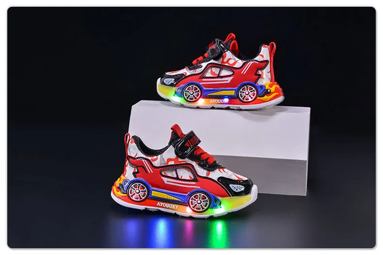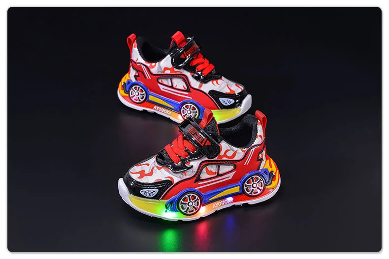 Spring Kids Shoes New Fashion Versatile Casual Shoe Anti Slip Cartoon Car Boy Shoe LED Lights Simple Trendy Sneakers Кроссовки