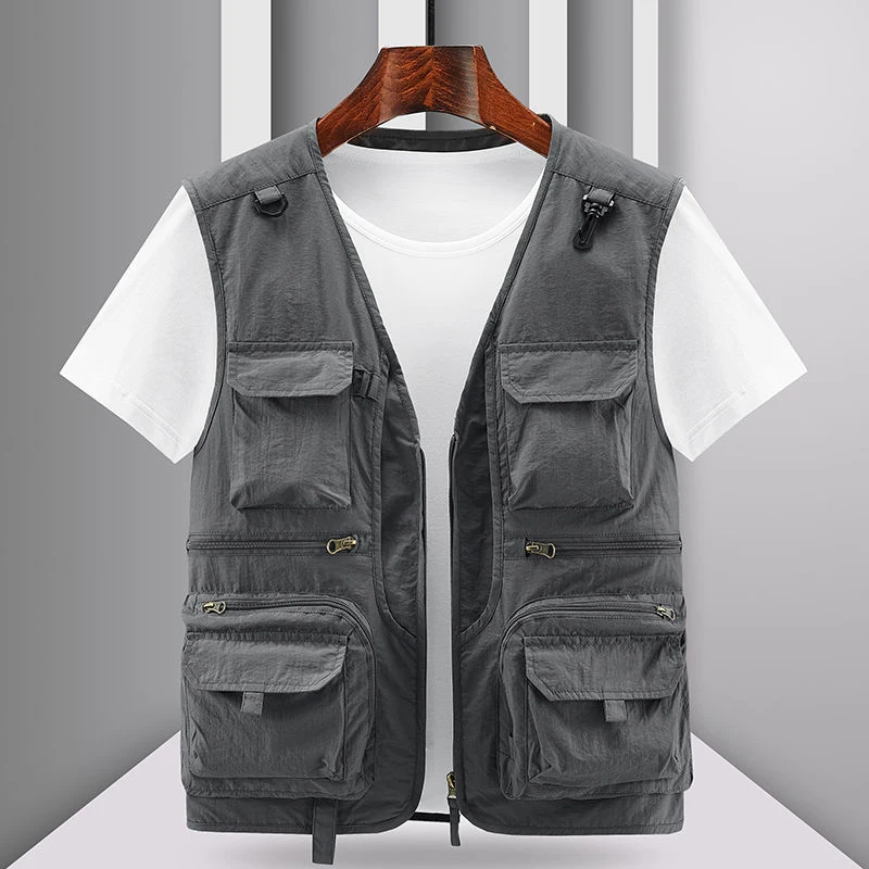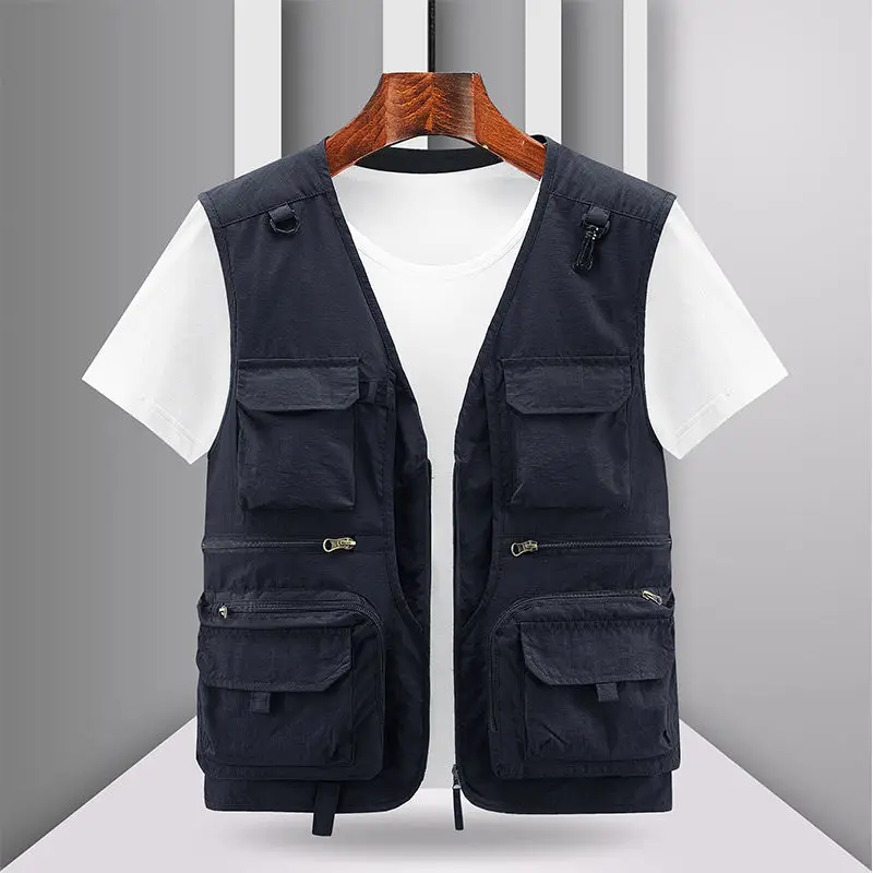 Spring New Men Outdoor Casual Vest Men Solid Breathable Multi-Pocket Photography Fishing Vest Jacket High Quality Vest Man M-6XL