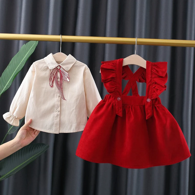 Spring newborn baby girl clothes infant 1 year birthday sets for girl baby clothing outfit sets infant shirt strap skirt suit